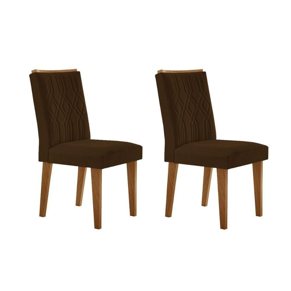Kit 2 Cadeiras Sala Jantar Alegra 2 Un Madeira Capuccino Suede Marrom Rufato