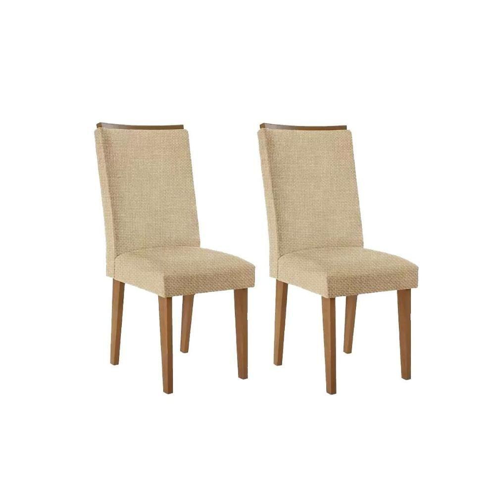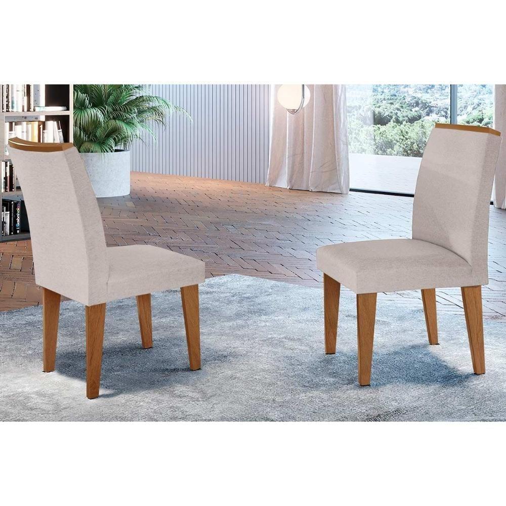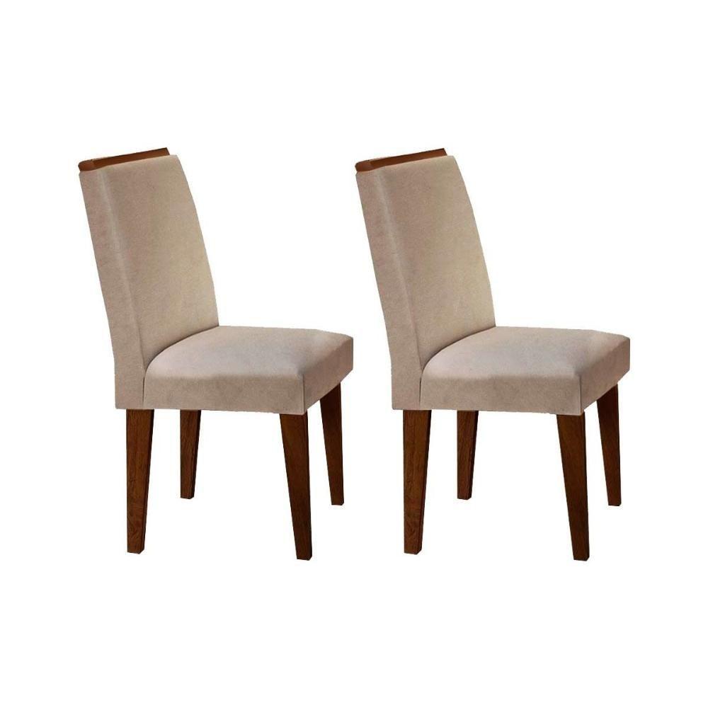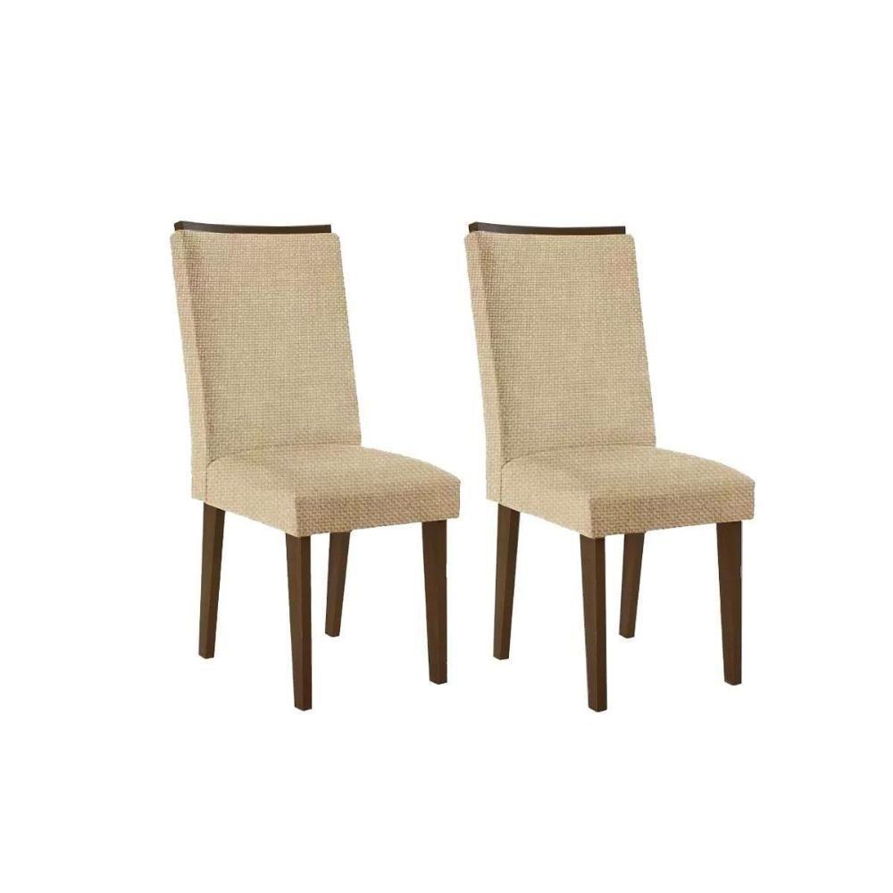 Kit 2 Cadeiras Sala Jantar Lunara 2 Un Madeira Capuccino Linho Bege Turim Rufato