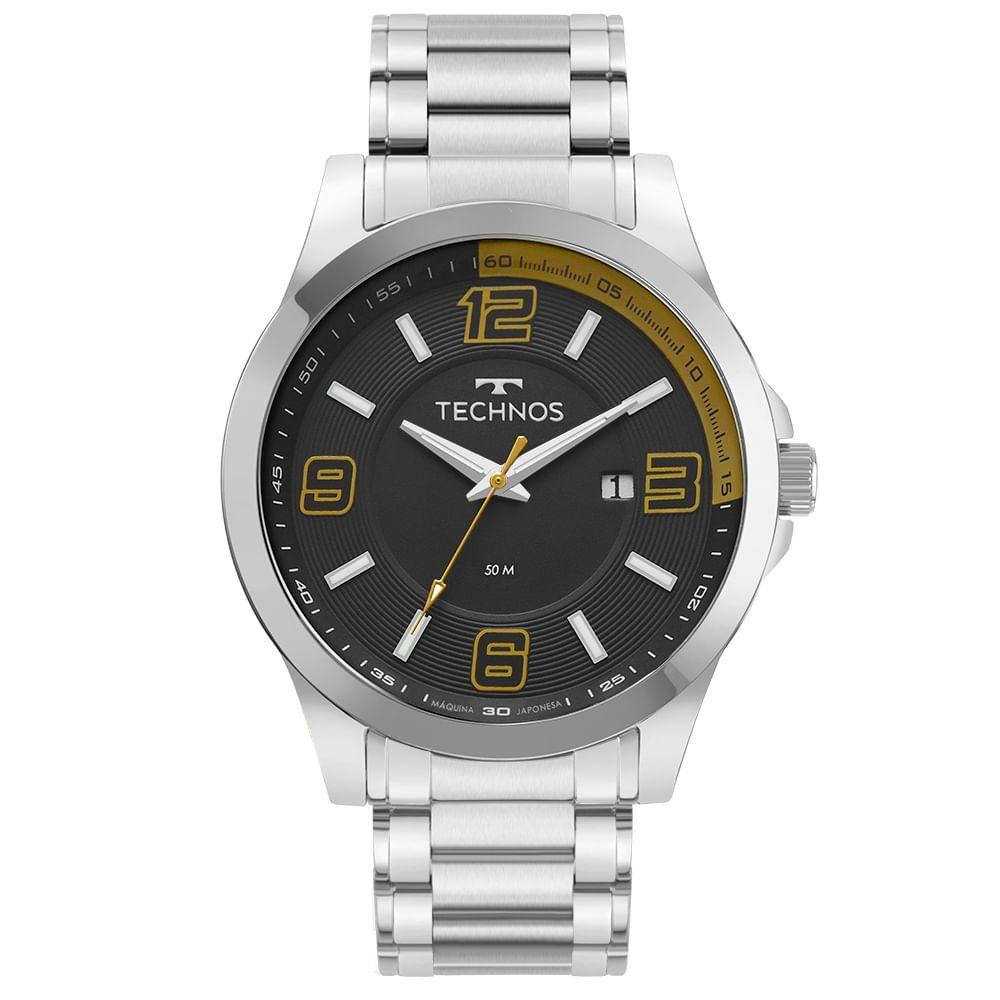 Relogio Masculino Aço Banhado Ouro + Pulseira + Crucifixo Azul Robusto Grande Resistente Original