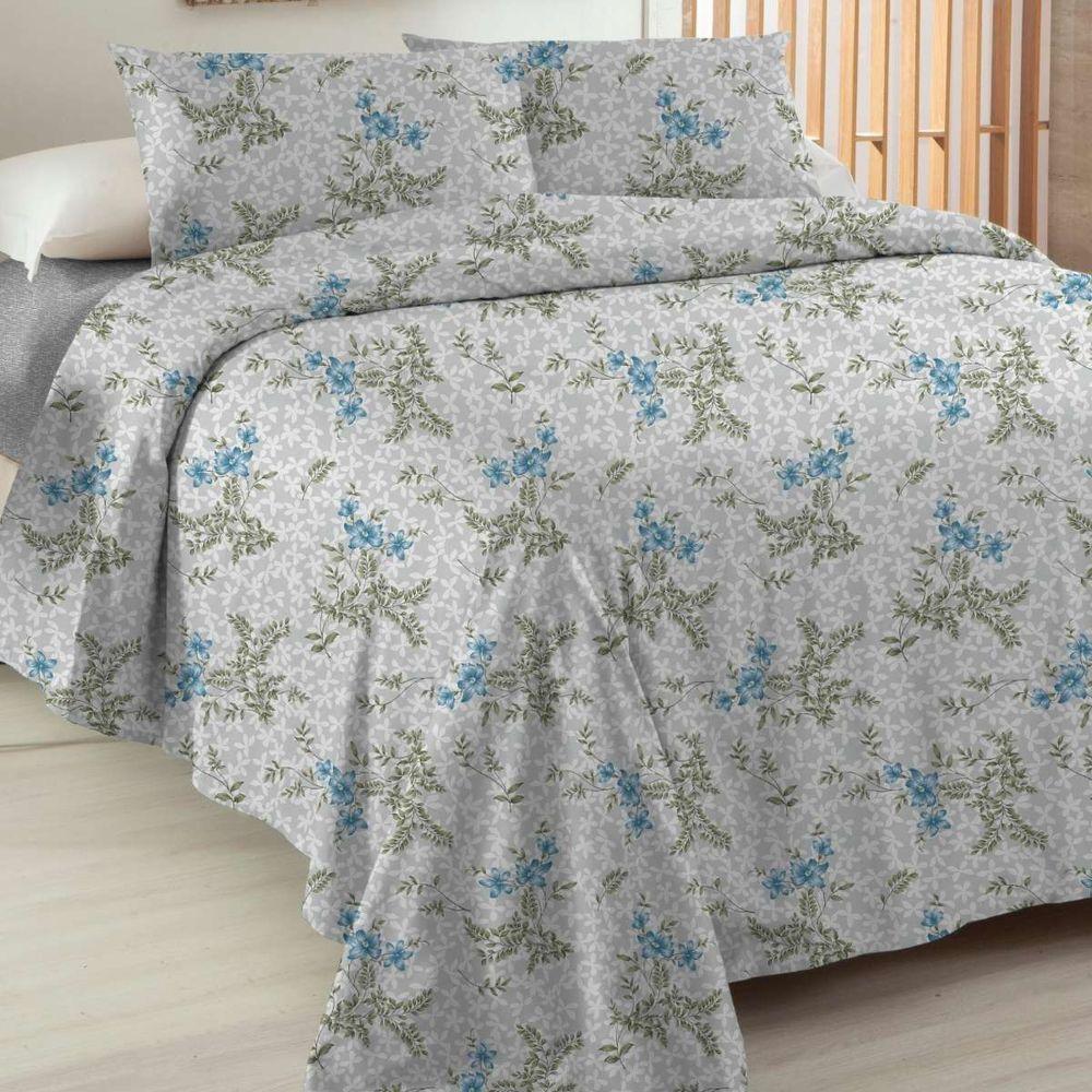 Jogo De Cama Solteiro Essenciale 100% Algodão 3 Peças Myosotis Azuis