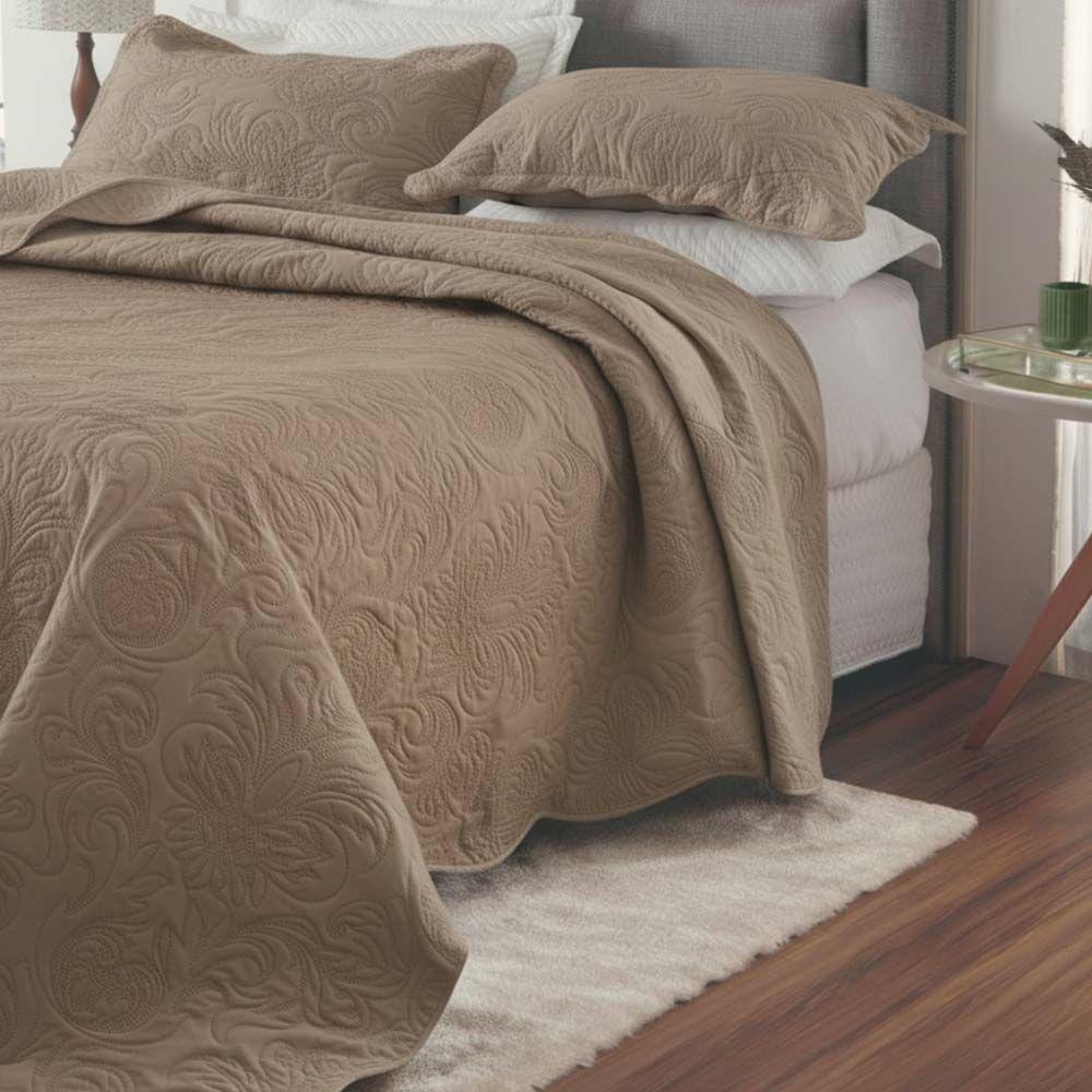 Kit Cobre Leito Colcha Basic Casal 3 Peças Dupla Face Liso Classic - Cáqui - 100% Poliéster