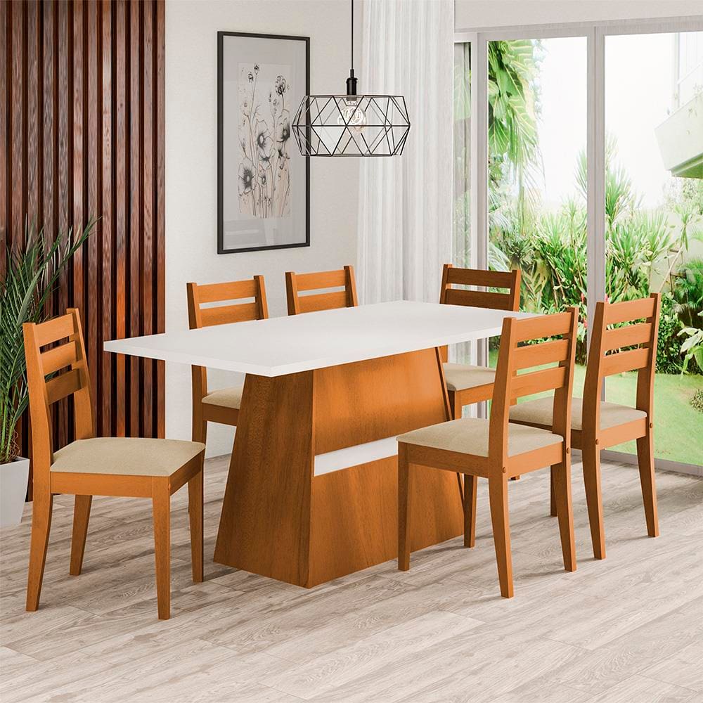 Mesa de Jantar Retangular Dobuê Dubai Light 160x90cm com 6 Cadeiras Estofadas Revestidas em Tecido Veloplus
