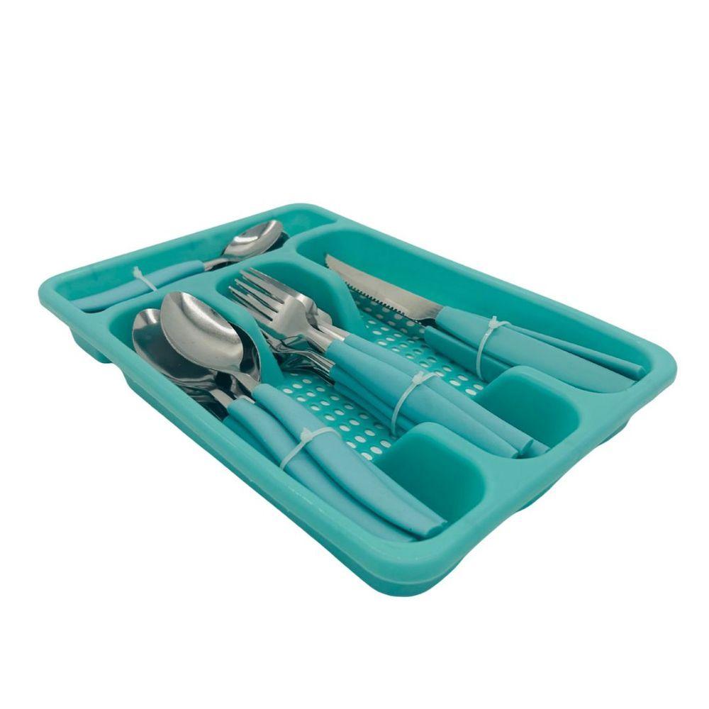 Jogo De Talhares 25 Peças Com Porta Talheres Verde