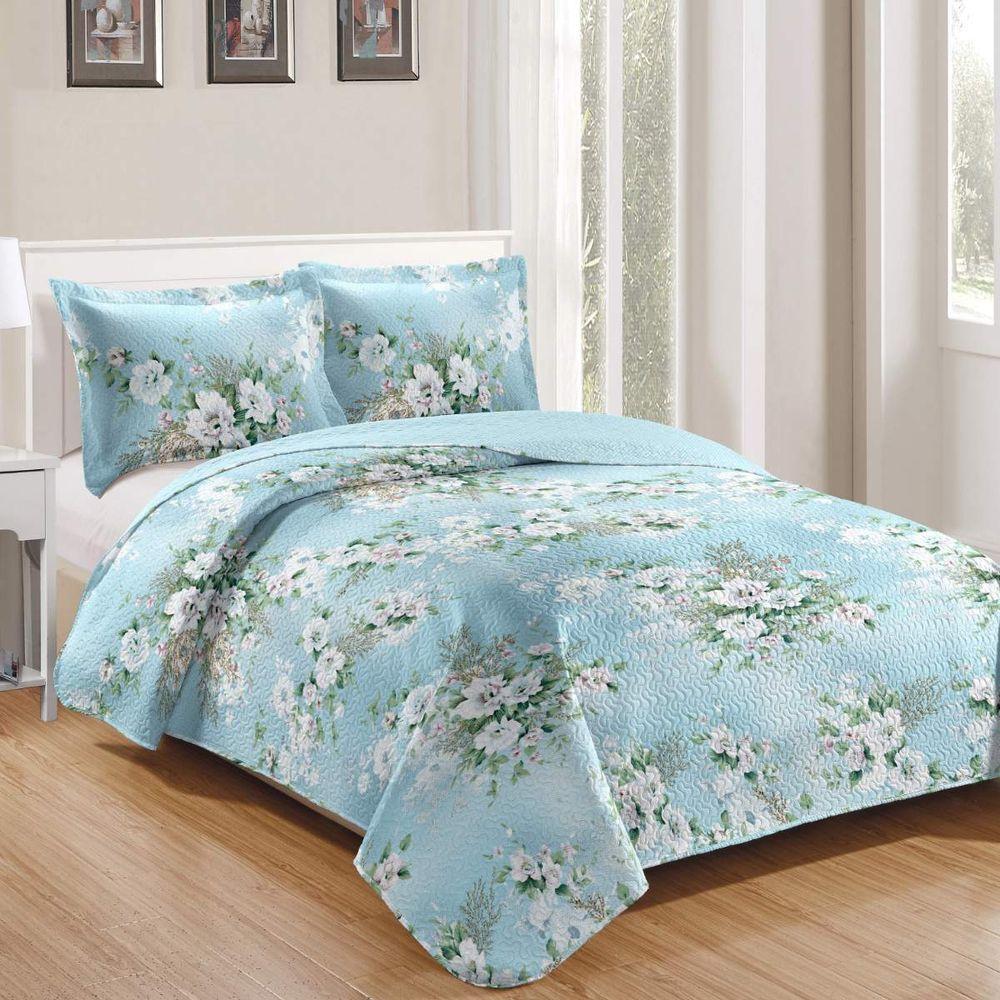 Kit Cobre Leito Solteiro + 1 Porta-travesseiro Patchwork Jasmine - Blue