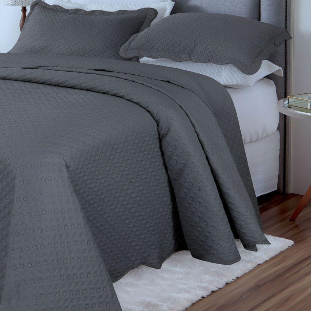 Kit Cobre Leito Colcha Basic Queen 3 Peças Dupla Face Liso Classic - Cinza Escuro - 100% Poliéster