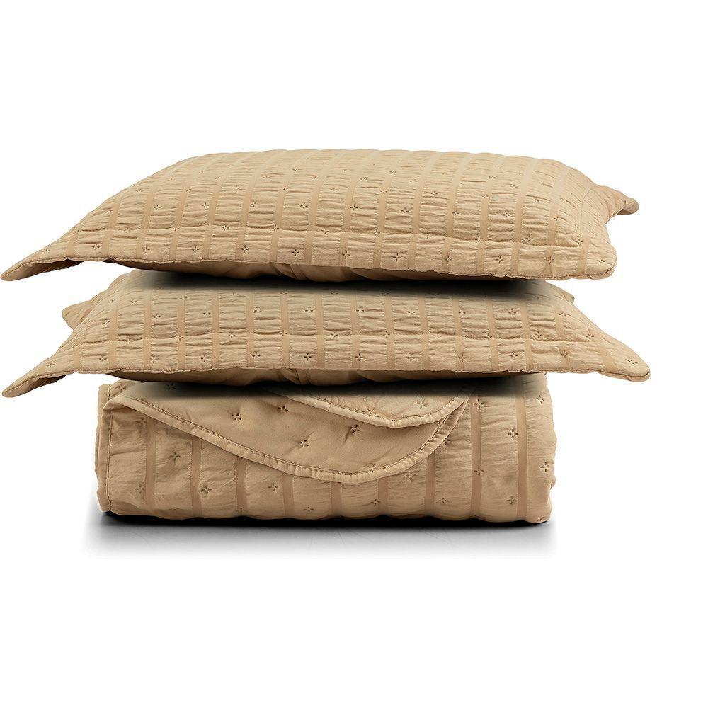 Cobre Leito King Plissê Seersucker E Matelado Ultrassônico 03 Peças 100% Poliéster - Mel