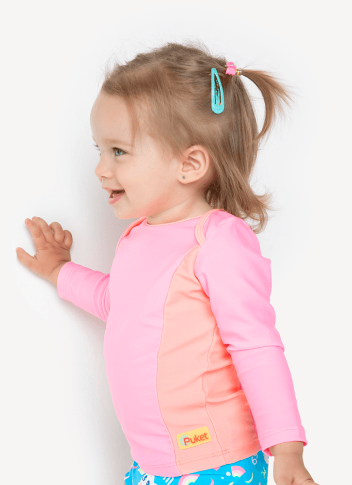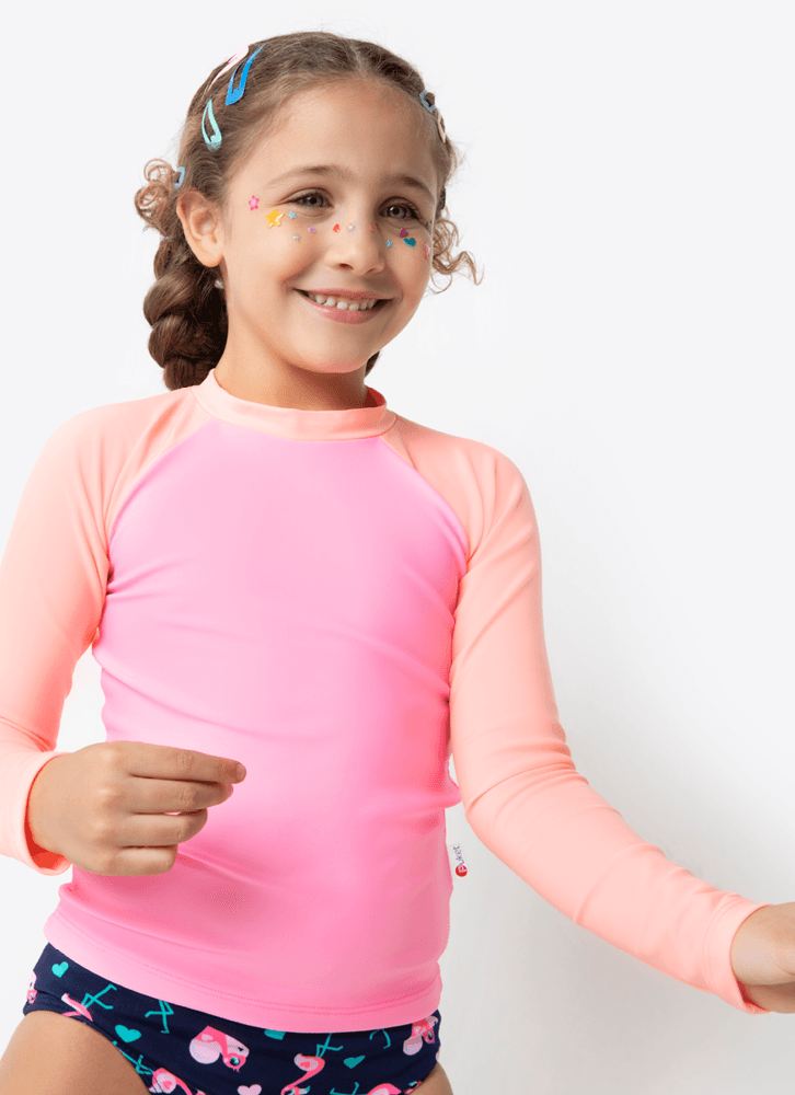 Camiseta Manga Longa com Proteção Solar Menina Color Block