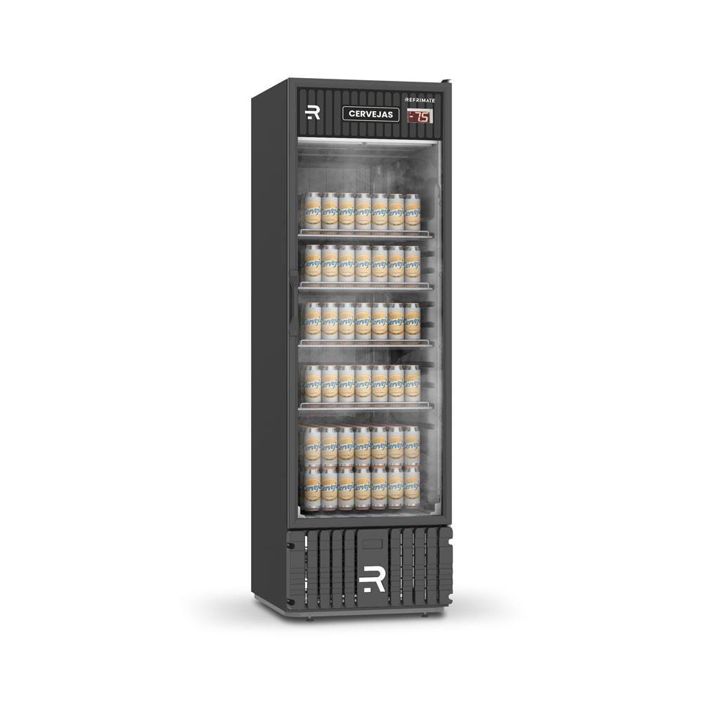 Cervejeira Expositora Porta Vidro 400l Vcce400pvpp Preta 220v Refrimate Com Chopeira 3,5l 220v