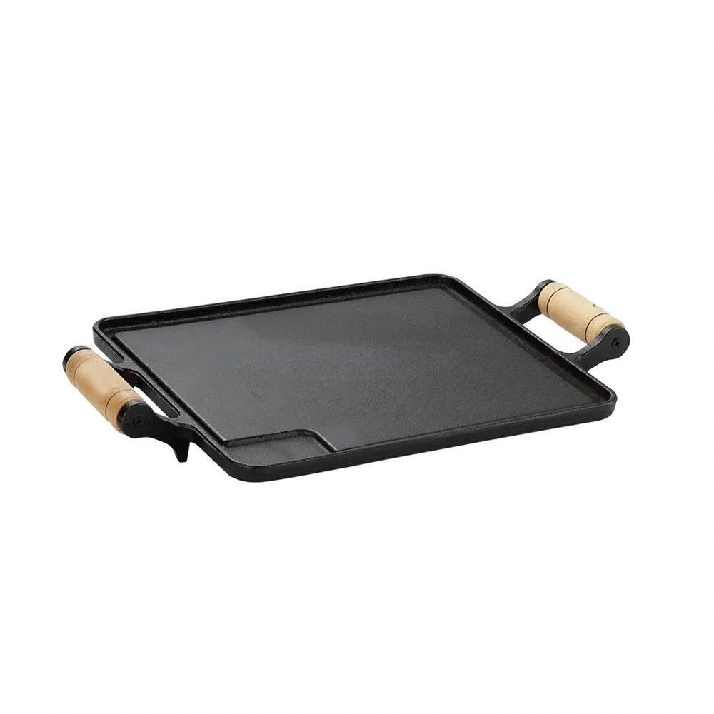 Bifeteira De Ferro Fundido Quadrada Alça Madeira 25X25Cm