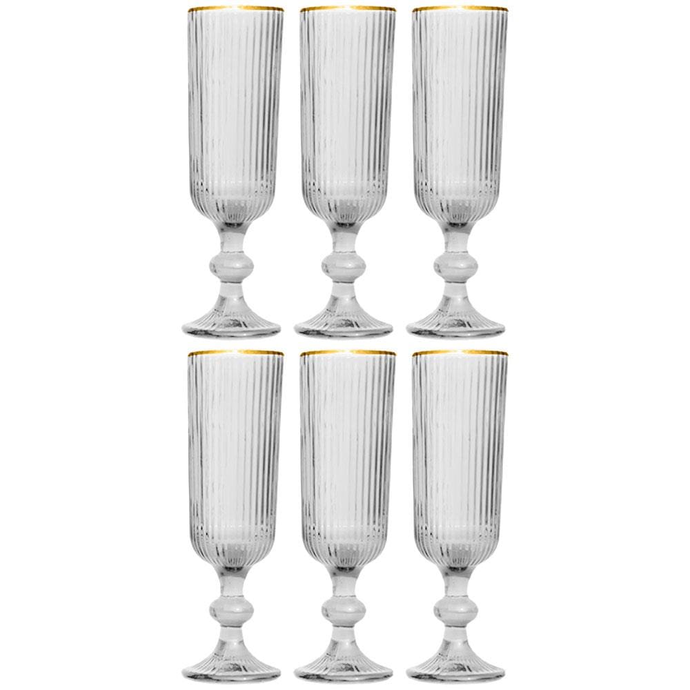 Conjunto de Taças L`Hermitage Cameratta em Vidro com Borda Dourada 160ml - 6 Peças