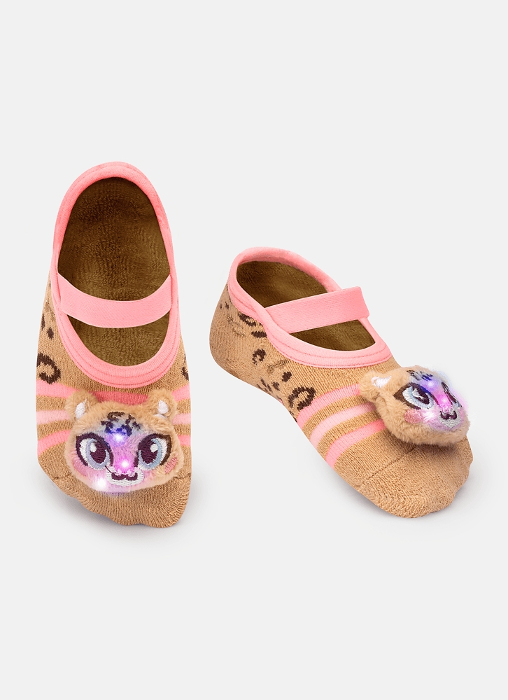 Meia Sapatilha Menino Antiderrapante com LED Tigre Roar