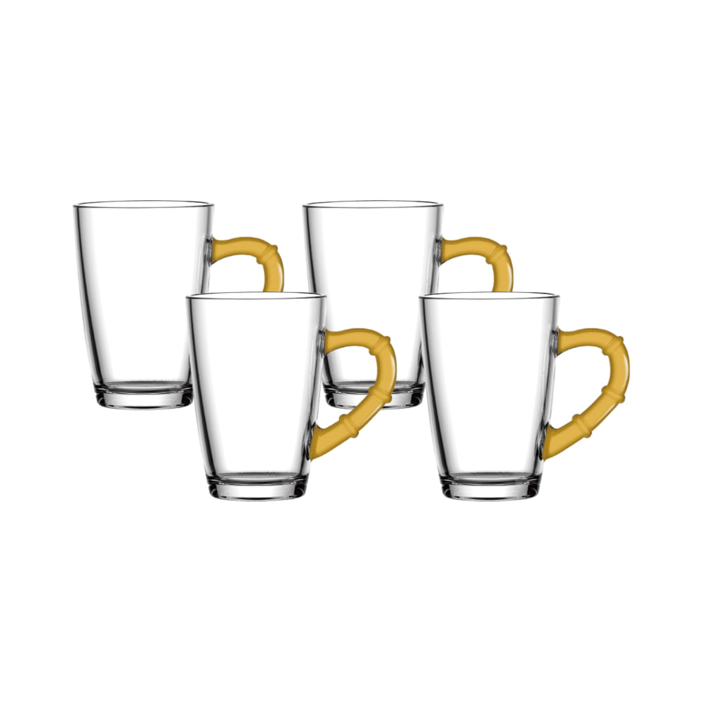Conjunto 4 Canecas Cris Hauskraft Vidro Bambu 210ml