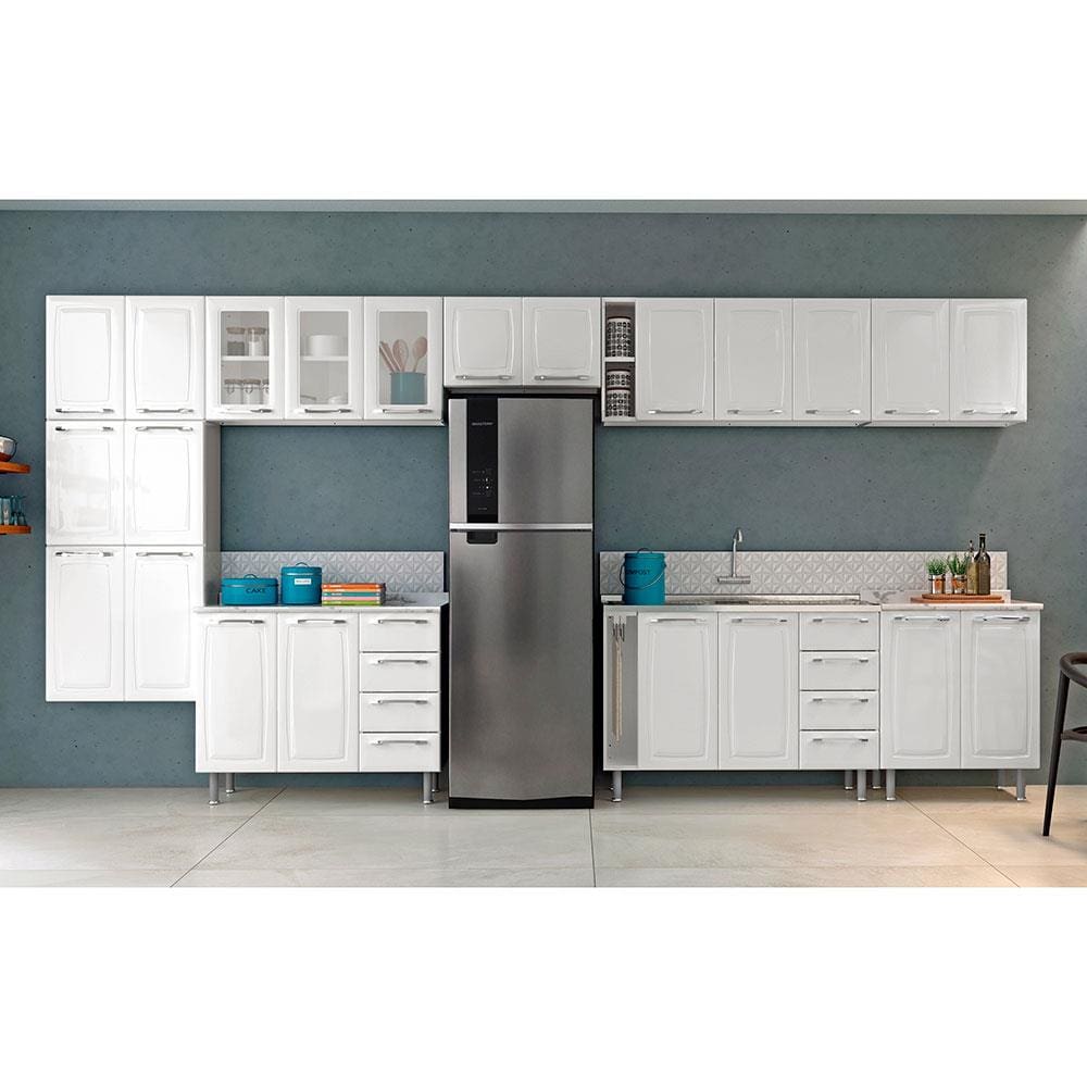 Cozinha Completa Itatiaia Diamante com 22 Portas, 8 Gavetas e 15 Prateleiras - 435cm de largura - Branco
