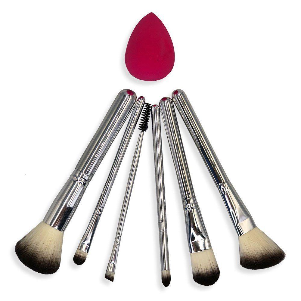 Kit Pincel De Maquiagem Sereia 7 Peças Profissional Esponja
