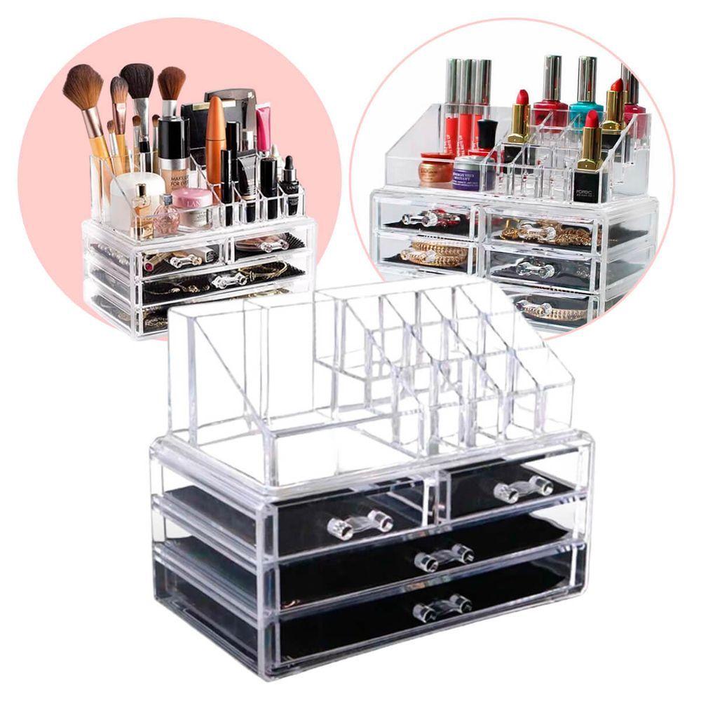 Organizador De Maquiagem Giratório 360° Transparente Em Acrílico