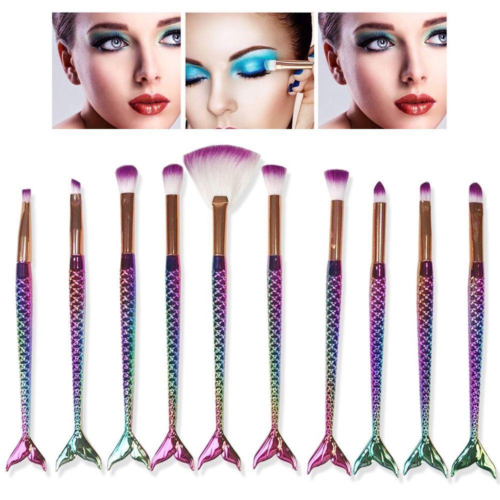 Pincel Sereia 10 Peças Maquiagem Mermaid Sombra Delineador