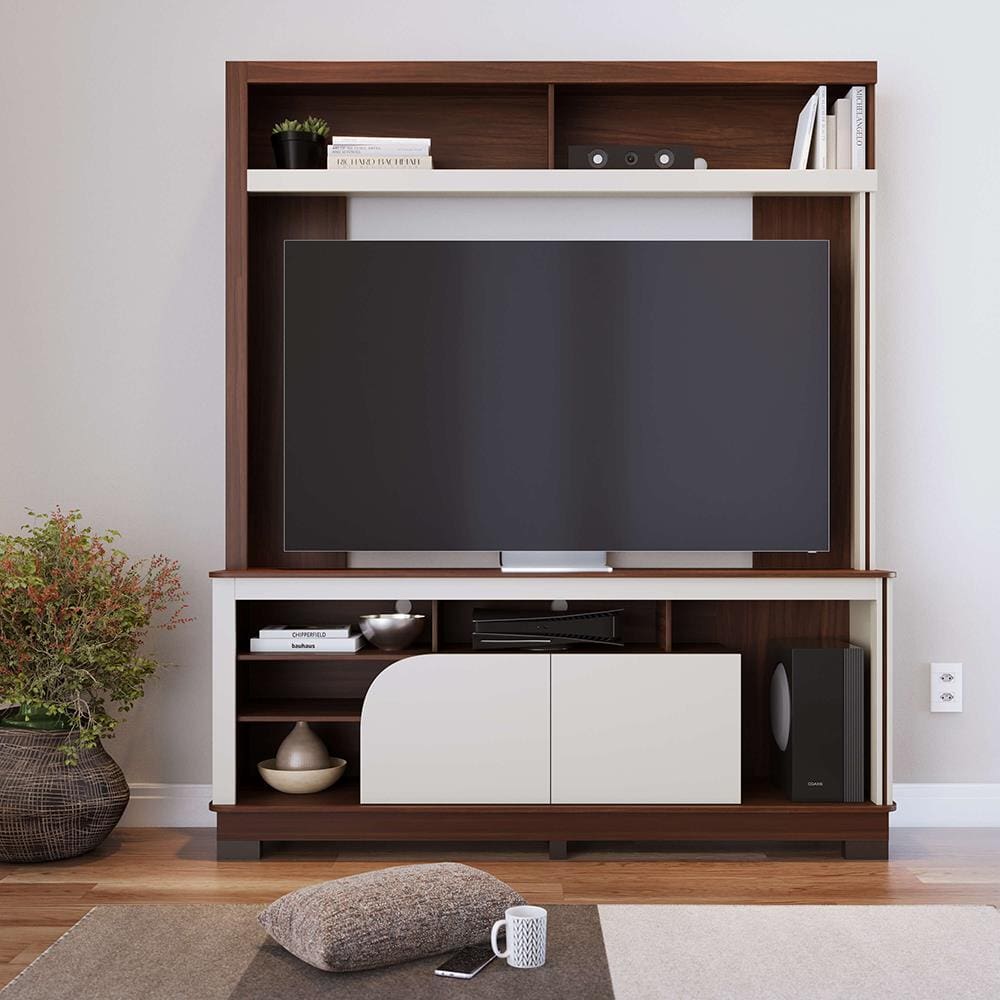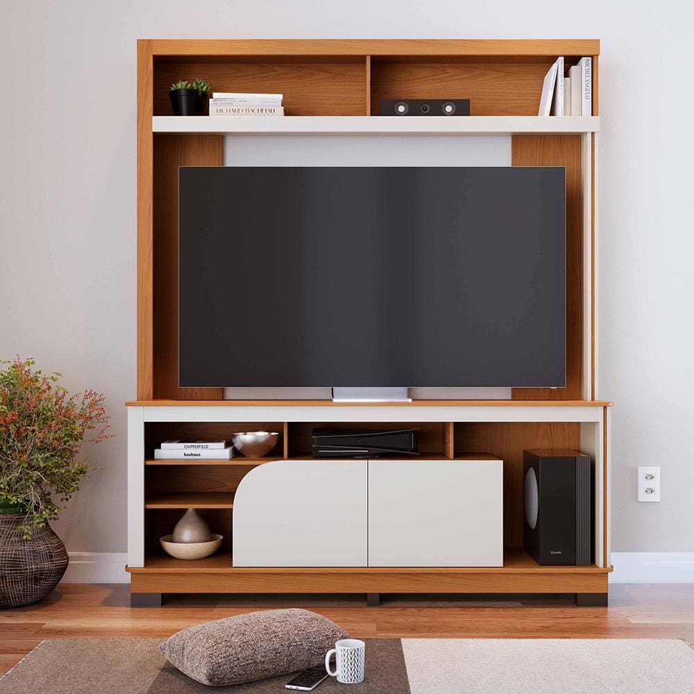 Estante para até TV 65" Colibri Belaya 2 Portas Divisórias Inteligentes Passa Fio Tampo e Base Curvos