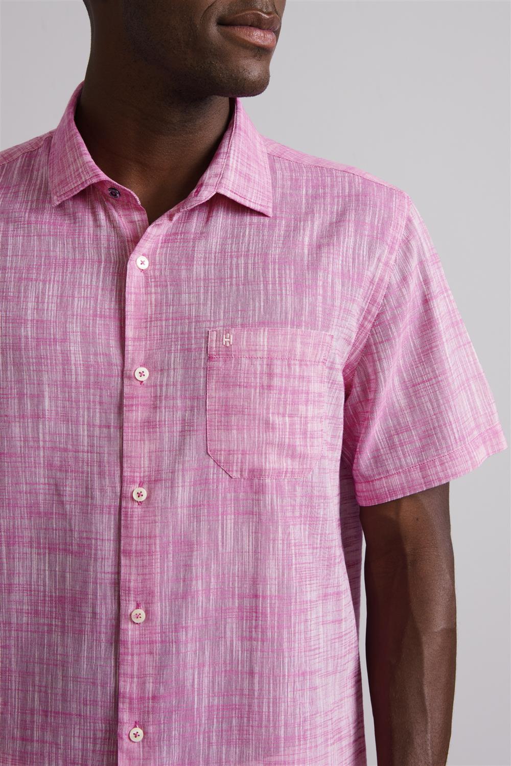 Camisa Manga Curta com Bolso Comfort - Rosa Escuro