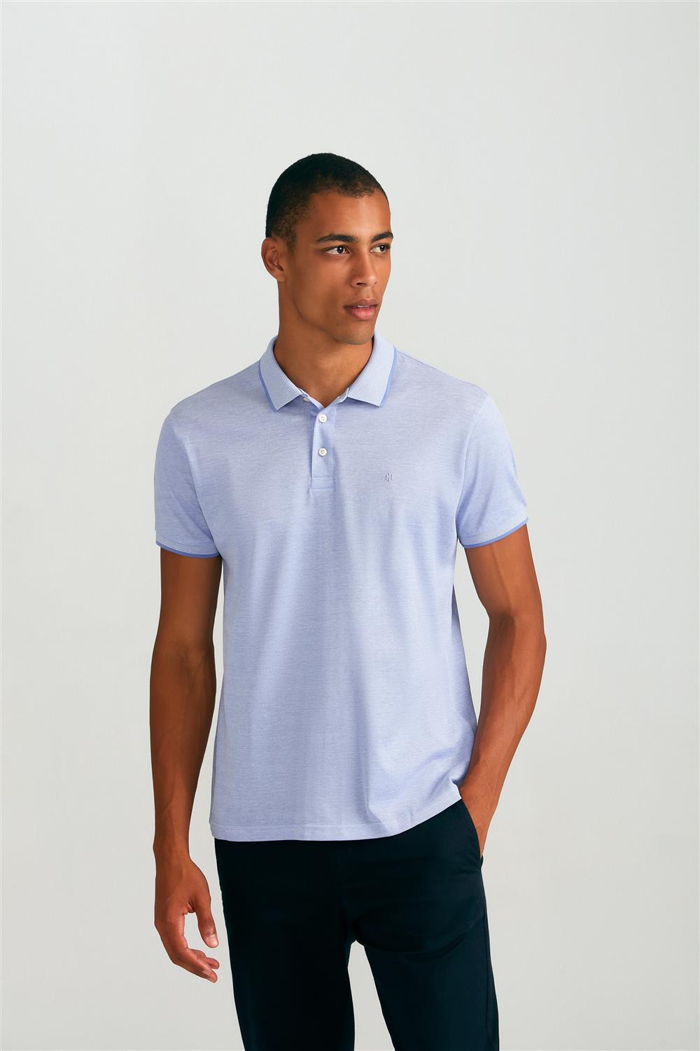 Polo Manga Curta Comfort Pima - Azul Marinho / Azul Mediterraneo