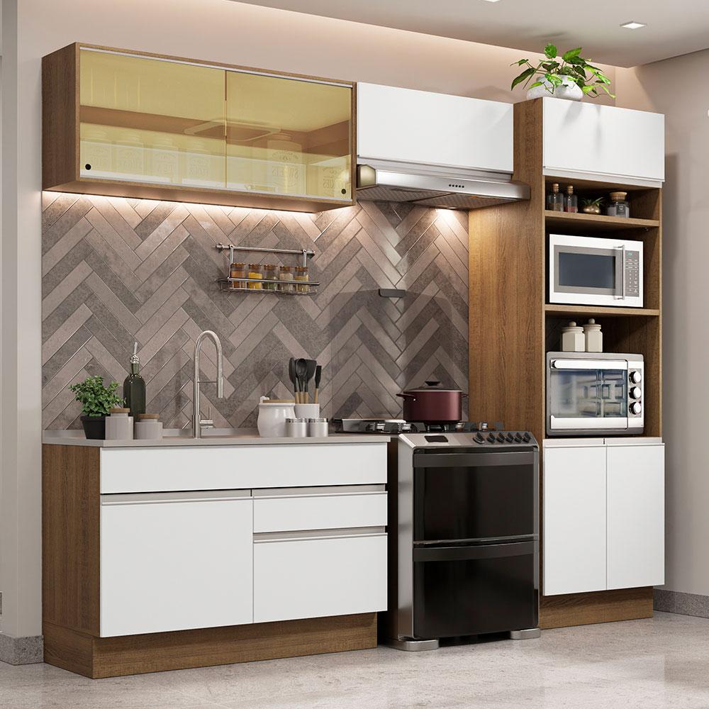 Cozinha Completa Madesa Glamy 270012 com Armário e Balcão (Sem Tampo e Pia) - Rustic/Branco