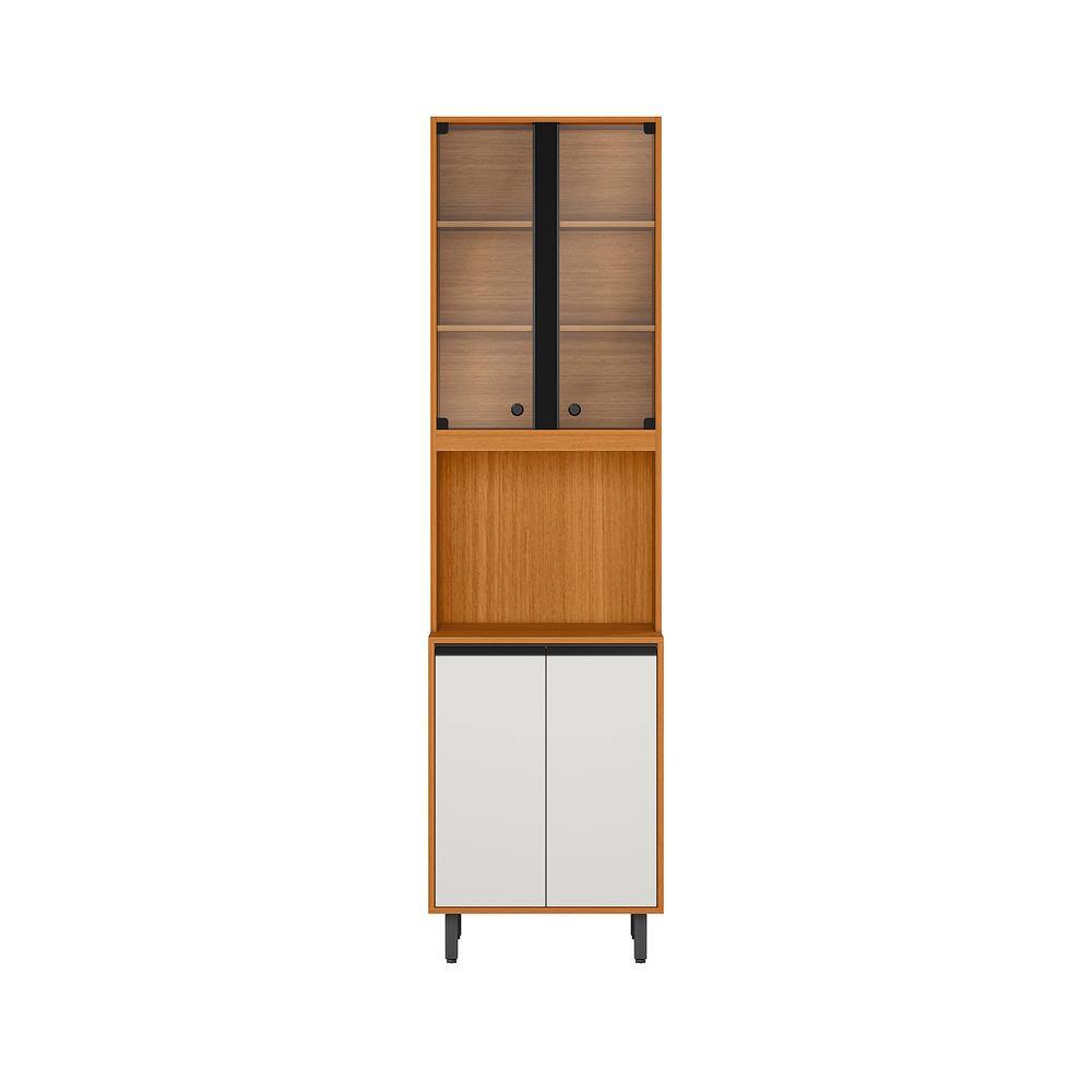 Paneleiro Duplo Poliman Ravena 2 Portas Nicho Micro-ondas Prateleiras Internas Puxadores Preto Pés Reguláveis MDP Freijó Off White Acetinado