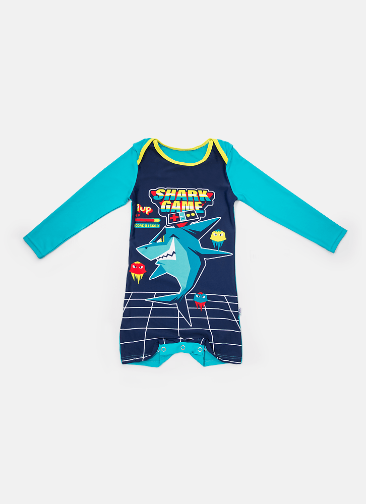 Macacão Praia Manga Longa Menino Tubarão Gamer