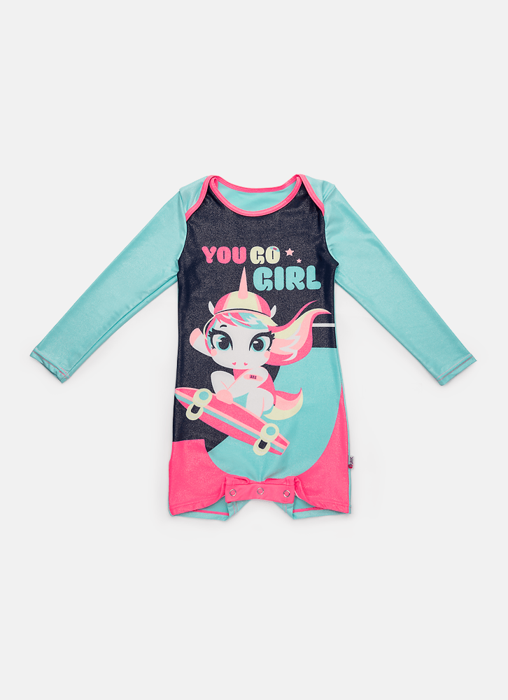Macacão Praia Manga Longa Menina Unicórnio Skate