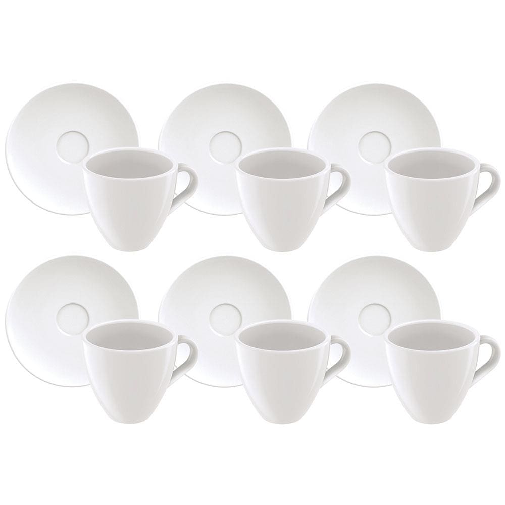 Conjunto com 6 Xícaras e Pires para Expresso Tramontina Paola em Porcelana Branca - 95 ml
