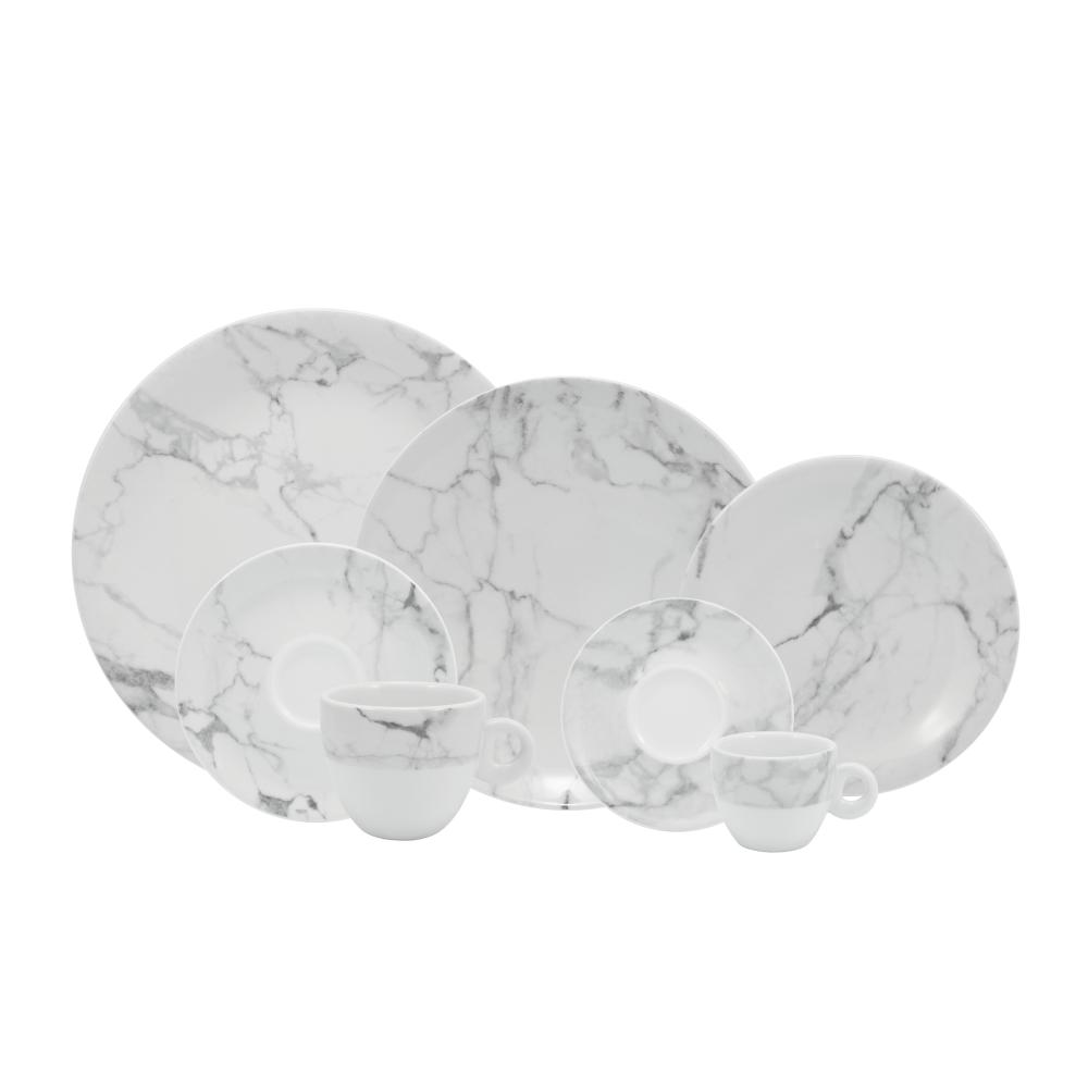 Jogo de Jantar 84 Peças Chá Marmore Porcelana Schmidt