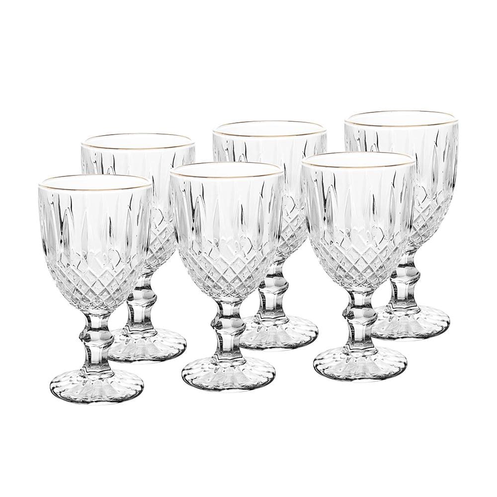 Conjunto 6 Taças de Água Wolff Greek 320ml Vidro Fio Dourado Clássico