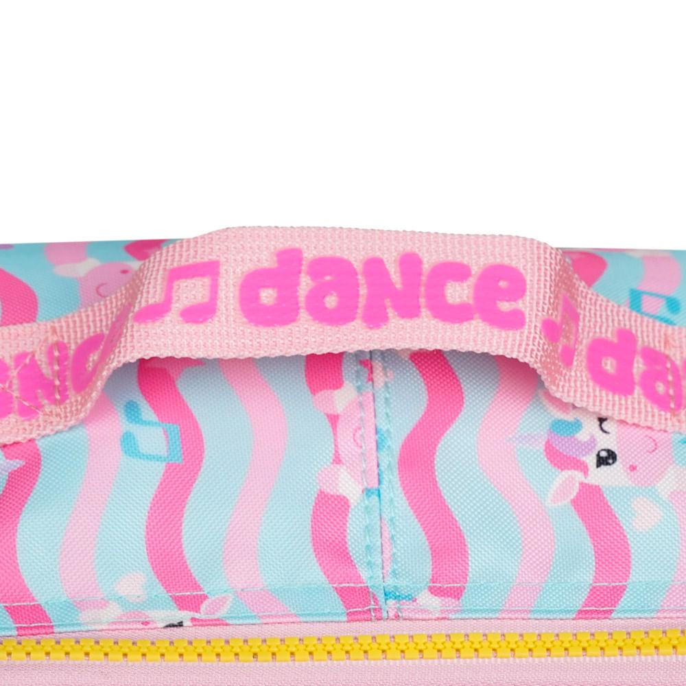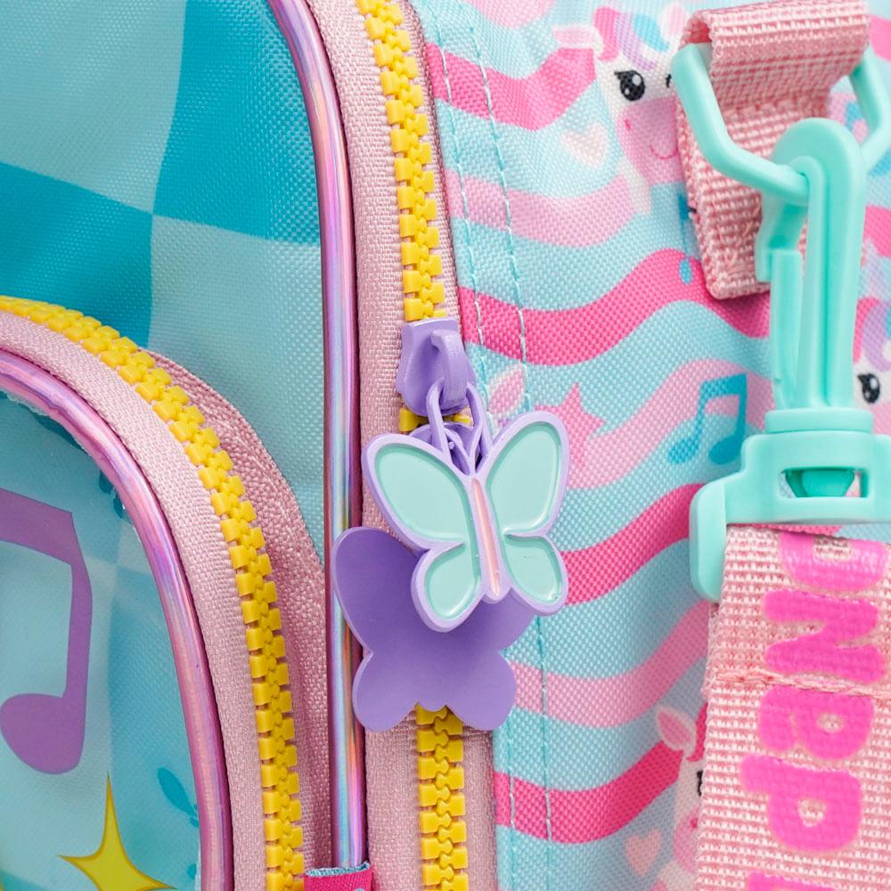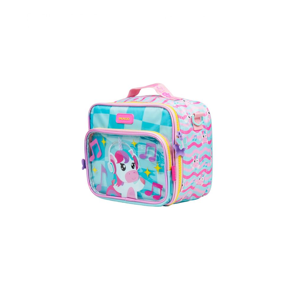 A Lancheira Escolar Feminina Térmica Unicórnio Just Dance é a escolha certeira para acompanhar a rotina das crianças com mais autonomia, diversão e tudo o que elas precisam para levar as refeições bem armazenadas. O destaque fica por conta do bolso frontal em PVC transparente com ilustração aplicada do unicórnio, que dá aquele efeito 3D encantador que vira sucesso imediato entre as pequenas fãs de cores, brilho e personagens.Organização e Espaço InternoA proposta da lancheira é simples: deixar o dia a dia mais prático. O interior totalmente térmico mantém alimentos frescos por mais tempo, ideal para quem leva lanche completo para a escola, clube ou passeios. O bolso frontal em PVC ajuda a separar itens menores (talheres, guardanapos, bilhetinhos), e o formato quadrado garante um espaço interno bem aproveitado, cabendo potes de vários tamanhos. Para completar, a lancheira conta com alça transversal ajustável e alça de mão para facilitar o transporte no ritmo da criança.Praticidade para Escola e PasseiosPensada para acompanhar mochilas e estojos da mesma linha, essa lancheira oferece detalhes que fazem diferença na rotina: alça carona, permitindo acoplar a lancheira em mochilas com rodinhas, e estrutura firme para apoiar na mesa sem tombar. A criança carrega com conforto, os responsáveis ganham praticidade e tudo fica protegido.Durabilidade e Detalhes ExclusivosProduzida em material resistente, com acabamento reforçado e estampa personalizada da coleção Just Dance, a lancheira combina durabilidade com um visual que realmente se destaca. O painel frontal com brilho discreto e o desenho aplicado garantem aquele efeito especial que diferencia a coleção dentro do mix Bagaggio.Por que escolher esta lancheira?O diferencial está na ** combinação de função térmica + personagem + painel transparente aplicado**, que deixa tudo mais lúdico sem abrir mão da performance. A promessa do produto é clara: uma lancheira térmica resistente, fácil de carregar e com visual que encanta, acompanhando a criança em qualquer rotina.FAQA lancheira mantém a temperatura mesmo em dias quentes?Sim! O interior térmico ajuda a conservar melhor a temperatura dos alimentos por mais tempo.Cabe pote grande?Sim, o formato quadrado e a boa profundidade permitem acomodar potes maiores, sucos e lanches completos.A alça transversal é ajustável?Sim. A criança ou responsável pode ajustar para usar no ombro ou na transversal.Ela pode ser acoplada à mochila de rodinhas?Sim! A lancheira tem alça carona, perfeita para fixar no puxador.É fácil de limpar?Sim. O material interno é térmico e pode ser higienizado com pano úmido.Especificações:Material: PoliésterTamanho: 23 x 20 x 12 cmPeso: Mochila:0,23Capacidade: 5,5 LGarantia: 90 diasFaixa etária: Infantil (3 a 8 anos)Outros atributos: - Zíper Personalizado.- Lancheira é térmica. - Tag de identificação. - Alça corona.