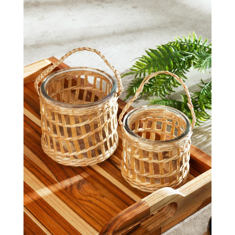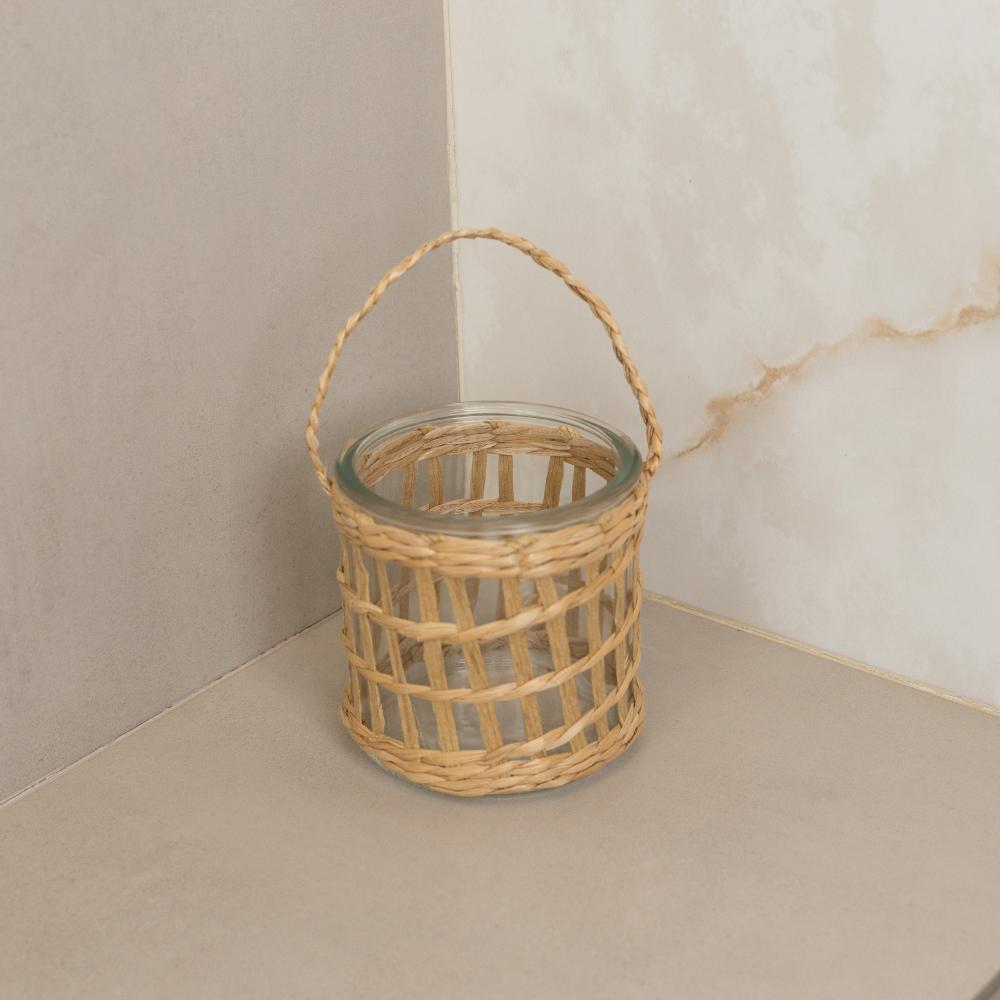 Castiçal Wolff de Vidro com Fibra Natural 12,5cm