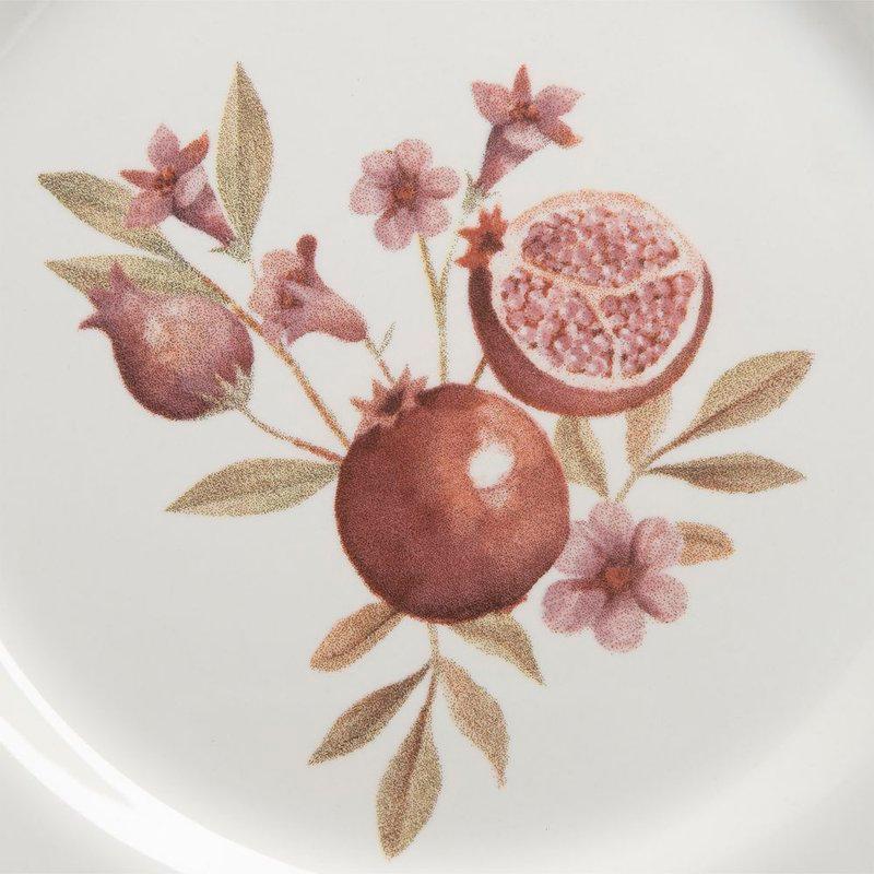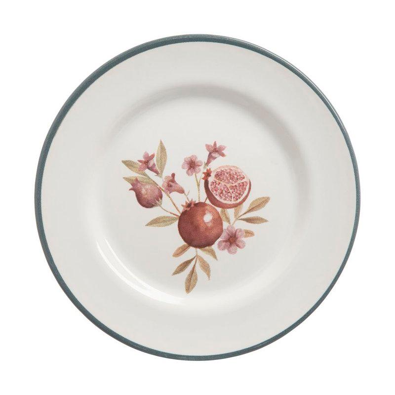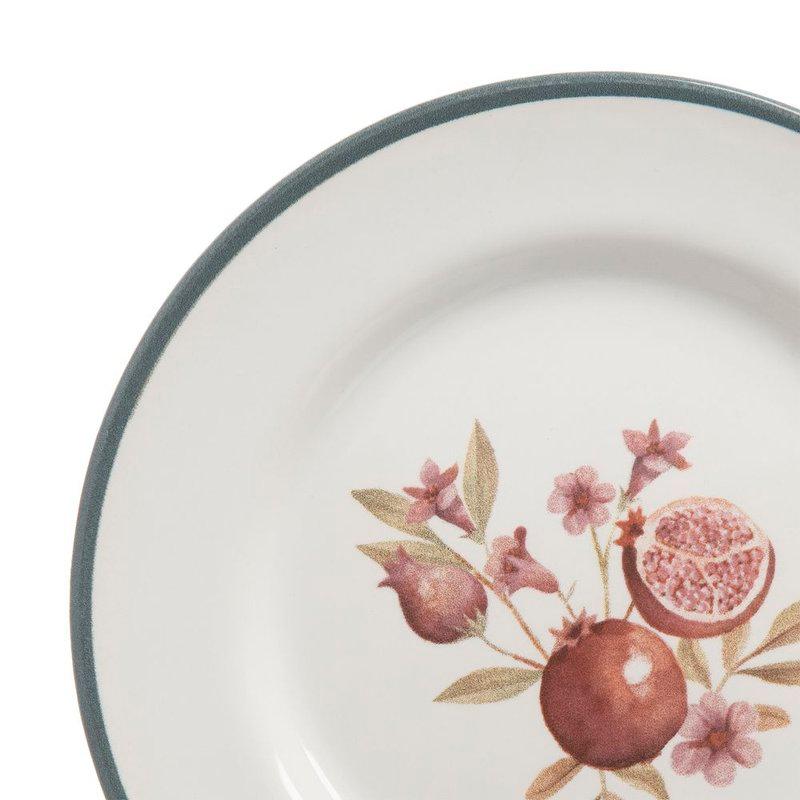 O Prato de Sobremesa Granada com 21 cm de diâmetro é produzido em cerâmica. Sua estampa apresenta romãs aquareladas à mão com aplicação digital, conferindo um toque artístico e sofisticado. Possui filete verde na beirada da aba. O prato pode ser combinado com diferentes outras linhas. Cuidados Lave as peças logo após o uso, com detergente neutro e esponja macia. Não utilize produtos abrasivos. Não esfregue com esponja de metal a superfície, pois pode danificar a estampa. *O esmalte utilizado no revestimento das nossas peças é mais duro que muitos metais. Os riscos que eventualmente aparecem após o uso das peças com talheres não são arranhões, mas sim metal depositado no esmalte da superfície. Na maioria das vezes, esses riscos podem ser removidos lavando-se a superfície com água corrente, detergente ou produtos que contenham ácido oxálico, esfregando com o lado mais abrasivo da esponja de limpeza. Nunca use esponjas de metal. Com a marca exclusiva Home Style, a Camicado transforma cada ambiente da sua casa, oferecendo praticidade, estilo e aconchego. Sinta o prazer de viver bem, no seu tempo e do seu jeito. Experimente a textura que acolhe, o design que encanta, e a organização que simplifica. Cada detalhe foi pensado para inspirar você a criar o seu lugar favorito do mundo. Descubra os produtos Home Style e viva bem com estilo. Camicado, casa com o seu estilo!