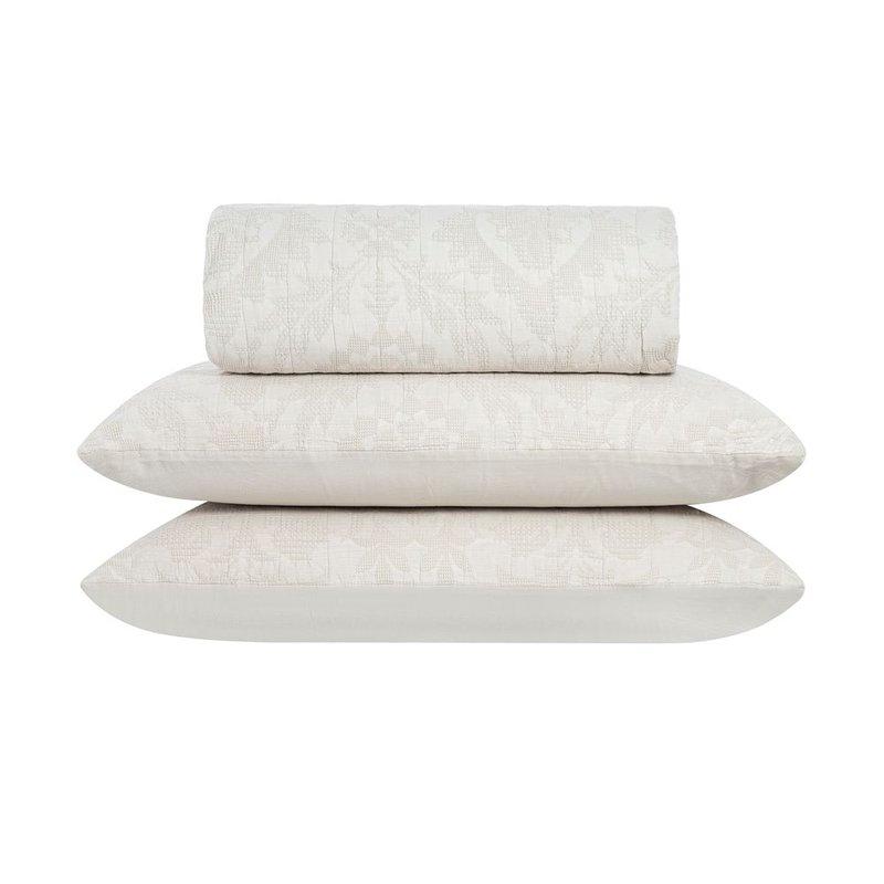 O Jogo de Colcha Casal Nórdica possui 3 peças e é confeccionado em jacquard leve e fresco, ideal para os dias mais quentes da estação. Além de proteger a roupa de cama no dia a dia, acrescenta camadas, cores e textura, deixando o quarto mais aconchegante e com um toque de frescor. A padronagem traz ornamentos em verde com inspiração nórdica, unindo sofisticação e delicadeza em um design atemporal. Os porta-travesseiros em versão dupla face permitem variar as combinações e criar diferentes composições de estilo. Cuidados: Lavagem normal com temperatura de até 30°C; Secagem em varal na horizontal; Não passar ferro; Não usar alvejante; Não lavar a seco; Contém: 1 Colcha 2,20 x 2,40 m 2 Porta-travesseiros 50 x 70 cm Com a marca exclusiva Home Style, a Camicado transforma cada ambiente da sua casa, oferecendo praticidade, estilo e aconchego. Sinta o prazer de viver bem, no seu tempo e do seu jeito. Experimente a textura que acolhe, o design que encanta, e a organização que simplifica. Cada detalhe do Jogo de Colcha Casal Nórdica foi pensado para inspirar você a criar o seu lugar favorito do mundo. Descubra os produtos Home Style e viva bem com estilo! Camicado, casa com o seu estilo.