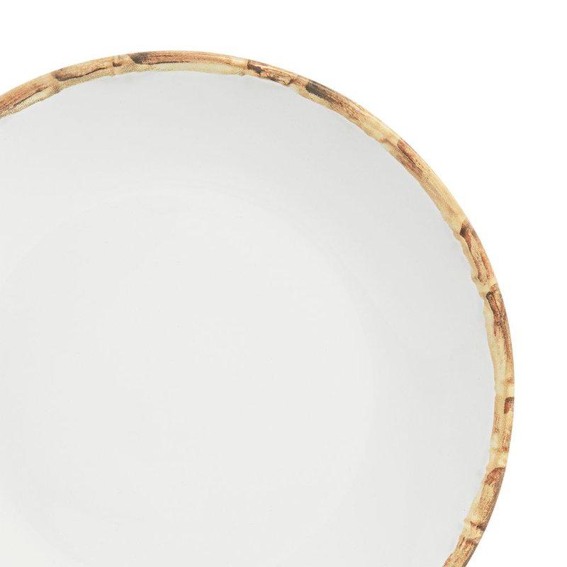 O Prato Raso Nodo com 27 cm de diâmetro é produzido em cerâmica com fundo branco e as bordas possuem pintura feita a mão imitando bambu. Apresenta uma estética minimalista, que permite ser combinado com diferentes acessórios e utensílios da mesa-posta. O prato raso serve a maioria das refeições e é o mais utilizado no dia a dia. Em um jantar mais elegante, o prato raso serve a refeição principal. Cuidados Prefira lavar manualmente Vai a lava louças vai ao micro-ondas Camicado, casa com o seu estilo!