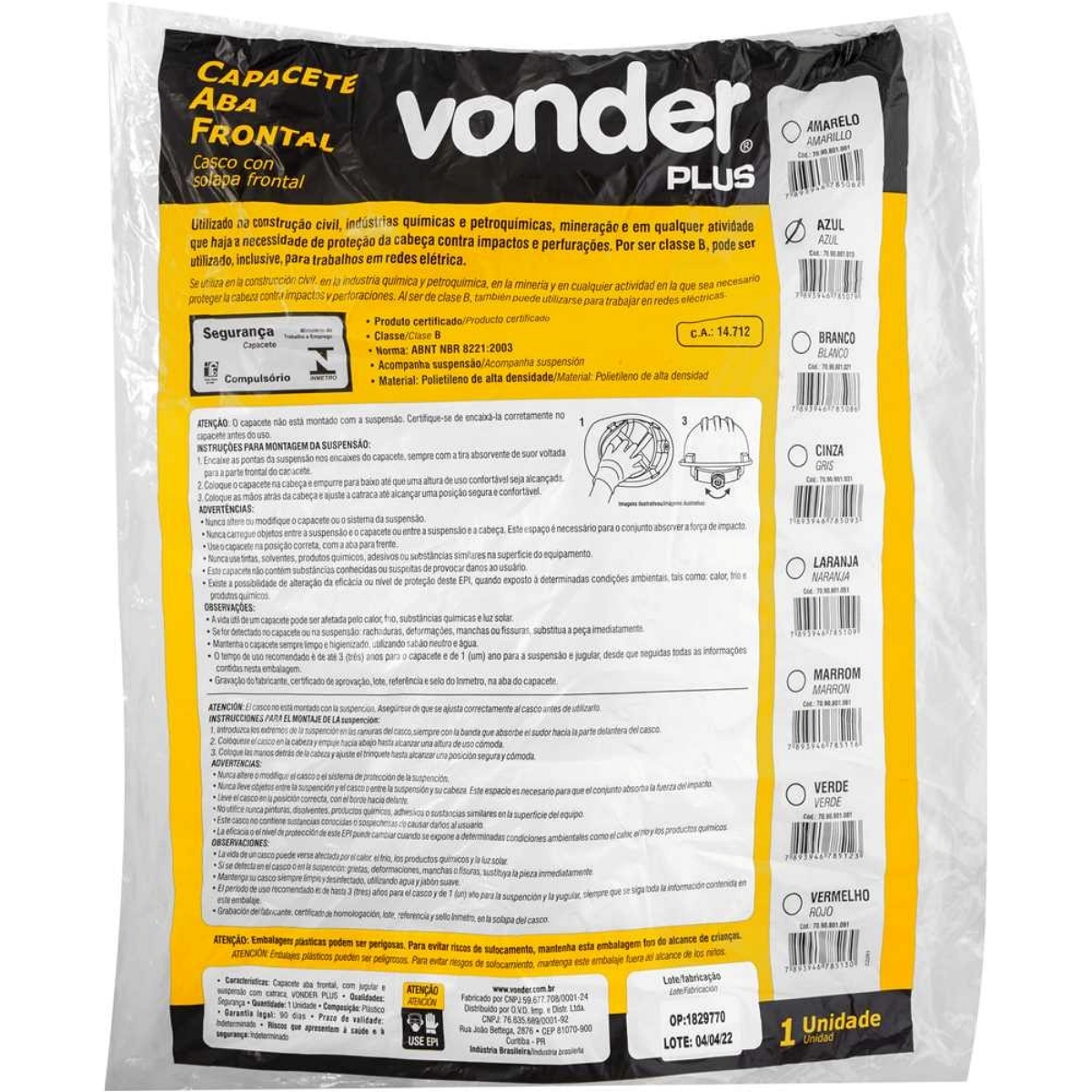 Marca: VonderConteúdo da embalagem:1 Capacete com jugular e suspensão com catraca.Destaques e diferenciais:Injetado em polietileno de alta densidade, proporcionando maior resistência e garantindo maior durabilidade. Conta ainda com encaixes laterais para acoplamento de protetor facial e/ou abafador de ruído e sistema de regulagem através de catraca, que facilita o ajuste. Além de possuir tira absorvente de suor e jugular, proporcionando maior conforto na utilização. Produto certificado, atende a norma ABNT NBR 8221:2003.Aplicações e dicas de uso:Utilizado na construção civil, indústrias químicas e petroquímicas, mineração e em qualquer atividade que haja a necessidade de proteção da cabeça contra impactos e perfurações. Por ser classe B, pode ser utilizado, inclusive, para trabalhos em redes elétricas.Detalhes TécnicosCertificado de aprovação (CA): 14712 Cor do capacete: Azul escuro Material do capacete: Polietileno de alta densidade Material da suspensão: Polietileno de baixa densidade Jugular: Poliester Observação: Classe B. Acompanha jugular e suspensão com catraca. Massa aproximada (peso) (kg): 0,374 kg Garantia - E (CDC):Garantia legal: 90 dias