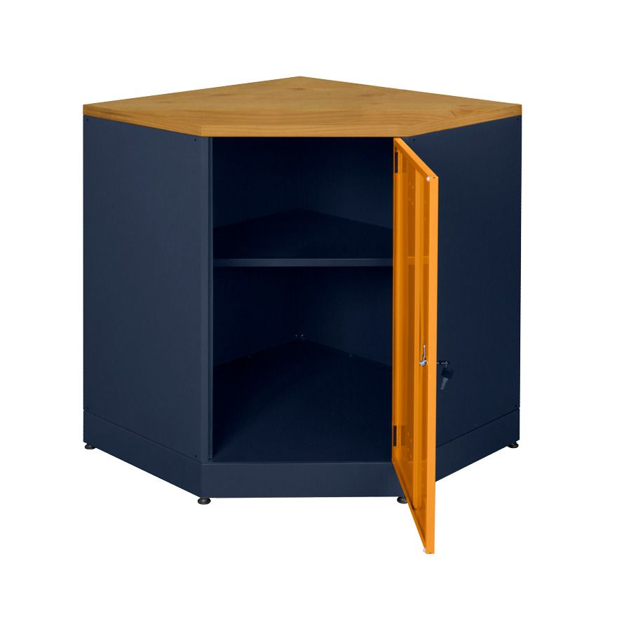 Cod. Fornecedor: 90012 Marca: Presto DescriçãoArmário de canto em aço com tampo em madeira 400, que encaixa nos cantos para melhor aproveitamento de espaço. Compõe a Presto Ábile, linha de Organizadores Modulares da Presto Sistemas de Organização, componíveis entre si, que podem ser configurados de maneira flexível e versátil, possibilitando diversas combinações.Vantagens Componível com todos itens da linha de mobiliário modular Presto Ábile;Produzido em aço, o que confere ao produto grande resistência;Maior Durabilidade proporcionada pelo tratamento anticorrosivo e pintura eletrostática a pó;Tampo resistente, produzido em madeira com espessura de40mm;Sua forma possibilita perfeito encaixe em cantos e ótimo aproveitamento de espaço;Excelente custo-benefício. Detalhes Técnicos Largura: 78 cmAltura: 92,5 cmProfundidade: 78 cmPeso: 36,65 kgCarga máxima: 15kg / distribuídos por prateleira e 50kg distribuídos no tampo
