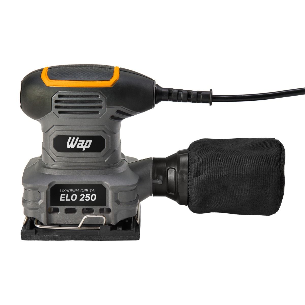 A Lixadeira Orbital WAP ELO 250, conta com 250W de potência e tem como proposta trazer conforto, desempenho e menos esforço na hora de realizar o lixamento da sua parede ou dar acabamento em alguma peça.Possui a base feita de polimeros e borracha, resistente e ideal para lixar madeira maciça, MDF/MDP cru, paredes e outros materiais que precisam daquele acabamento perfeito. Contém 1 saco reutilizável coletor de pó, 1 gabarito para furar de lixa, 1 lixa e 2 escovas de carvão para uma troca. Possui um cabo de 2 metros para maior mobilidade durante o trabalho e uma velocidade de 14000 orbitas por minuto.A base da lixa possui o tamanho de 1/4 de uma lixa convencional, ou seja, você compra uma lixa padrão e pode dividir ela em 4 pedaços iguais, sendo assim ela servirá na base da lixadeira, sem precisar fazer ajustes. Facilitando a troca durante o uso.Sua pega ergonômica e emborrada permite maior conforto durante a aplicação de pressão na ferramenta assim, fazendo com que o lixamento seja mais consistente e traga menos vibração para o usuário.Ela é leve e prática! A Lixadeira Orbital WAP ELO 250 possui um sistema de grampos que permite uma fácil troca de lixas. Seu botão liga e desliga é selado contra pó, aumentando a vida útil do produto.A ferramenta de uso obrigatório em uma bancada de trabalho.DADOS TÉCNICOS:POTÊNCIA: 250WFREQUÊNCIA: 60 HzMOTOR: UniversalVELOCIDADE:14000 OPMNIVEL DE RUÍDO: 83 d(B)CLASSE DE ISOLAÇÃO: Classe IICUBAGEM: 0,0038 m³CABO ELÉTRICO: 1,7 mCAPACIDADE DO COLETOR: 240 mlFILTRO COLETOR: SimPOSSUI VELOCIDADE VARIÁVEL: NãoTIPO DE FILTRAGEM:Gaiola Plastica Revestida com Filtro de PanoFUNÇÕES: Lixar; AcabamentoAPLICAÇÕES: Lixar Madeiras, Gesso, Alvenaria, Metal, Lixar Paredes, Dar Acabamento, Preparar Superfícies para Receber Pintura, Remover Pintura.CERTIFICADO INMETRO -EMPILHAMENTO MÁXIMO: -PESO LÍQUIDO: 1,24 KgPESO BRUTO: 1,4 KgDIMENÇÃO DA BASE: 110 x 105 mmDIMENÇÃO DA LIXA: 145 x 110 mmDIMENSÕES DO PRODUTO (CxLxA): 23,5 x 11 x 15 cmDIMENSÕES DA EMBALAGEM (CxLxA): 12,5 x 19,5 x 15,5 cmGARANTIA: 01 ANO (3 meses de garantia legal e mais 9 meses de garantia especial concedida pelo fabricante)CONTEÚDO DA EMBALAGEM: LIXADEIRA ORBITAL ELO 250 + Acessórios + Manual de Instruções.