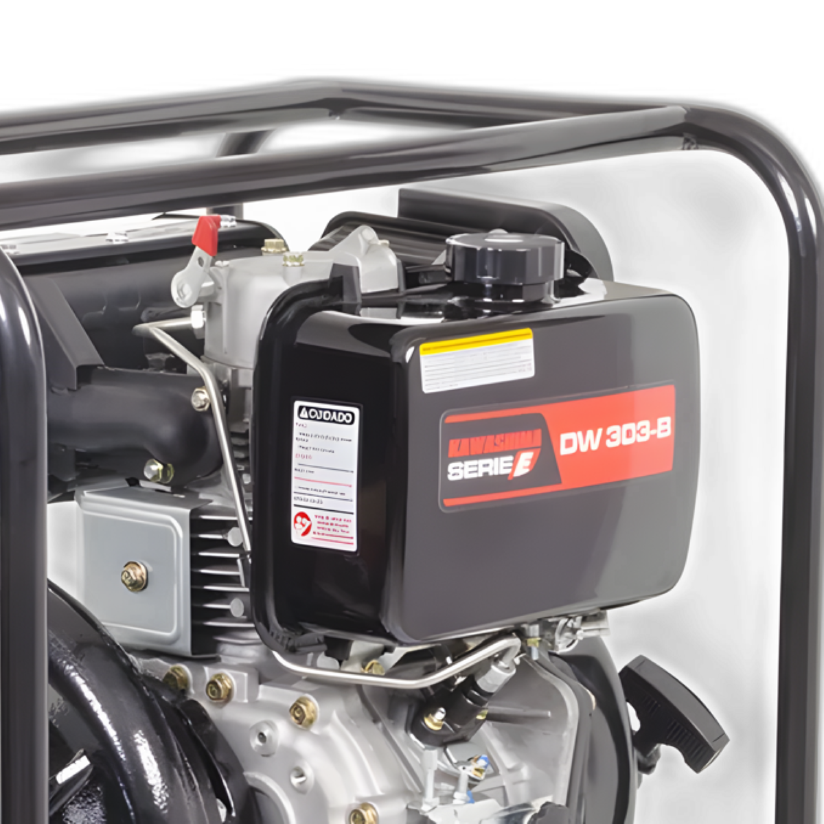 Motobomba Diesel Kawashima 10 HP 3''x3'': Potência e Eficiência para Água LimpaDescubra a força imparável da Motobomba Diesel Kawashima DW303B, a solução definitiva para suas necessidades de bombeamento de água limpa em larga escala. Projetada com um robusto motor diesel Kawashima de 10 HP e um sistema centrífugo de alta performance, esta motobomba 3''x3'' é ideal para agricultores, construtores e proprietários de terras que buscam confiabilidade e alto rendimento. Com uma impressionante altura manométrica total de 75 metros e uma vazão máxima de 46,68 m³/h, a DW303B garante que a água seja transportada com rapidez e eficiência, mesmo em longas distâncias ou grandes elevações. Sua construção durável e o motor monocilíndrico de 4 tempos com refrigeração a ar asseguram uma longa vida útil e desempenho consistente. A partida manual simplifica a operação, tornando-a uma ferramenta indispensável para irrigação, drenagem de áreas alagadas, abastecimento de reservatórios e outras aplicações que exigem uma bomba potente e econômica. Invista na Kawashima DW303B e tenha a certeza de um equipamento que entrega performance superior com o custo-benefício que você merece. Garanta já a sua e transforme a gestão da água em seu projeto.Especificações Código: 65-70260 Modelo: DW 303-B Tipo: Motobomba diesel, centrífuga, água limpa Diâmetro de saída: 3'' x 3'' Diâmetro de entrada: 3'' x 3'' Altura manométrica total: 75 m.c.a. Altura total de sucção: 7 m Vazão máxima: 46,68 m³/h Motor: Kawashima Serie E Tipo do motor: Monocilíndrico, 4T, refrig. a ar, diesel Cilindradas: 418 cc Potência máxima: 10 HP Sistema de partida: Manual Capacidade do tanque de combustível: 5,5 L Dimensões: 635 x 460 x 585 mm Peso líquido: 69 kgItens Inclusos 1 Motobomba Diesel 3''x3'' 10HP Kawashima DW303B completaPerguntas Frequentes (FAQ) Pergunta: Qual o tipo de água que esta motobomba é indicada para bombear?Resposta: Esta motobomba é projetada para água limpa. Pergunta: Qual a potência do motor desta motobomba?Resposta: Ela possui um motor diesel de 10 HP. Pergunta: Qual o diâmetro das conexões de entrada e saída?Resposta: Ambas as conexões têm diâmetro de 3'' x 3''. Pergunta: Qual a altura máxima que a água pode ser bombeada?Resposta: A altura manométrica total é de 75 metros. Pergunta: Qual a forma de partida do motor?Resposta: O sistema de partida é manual. Pergunta: Qual a capacidade do tanque de combustível?Resposta: O tanque de combustível tem capacidade para 5,5 litros.