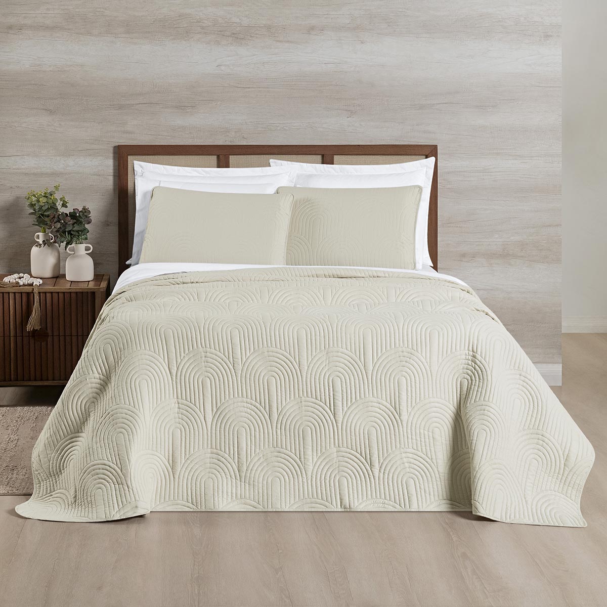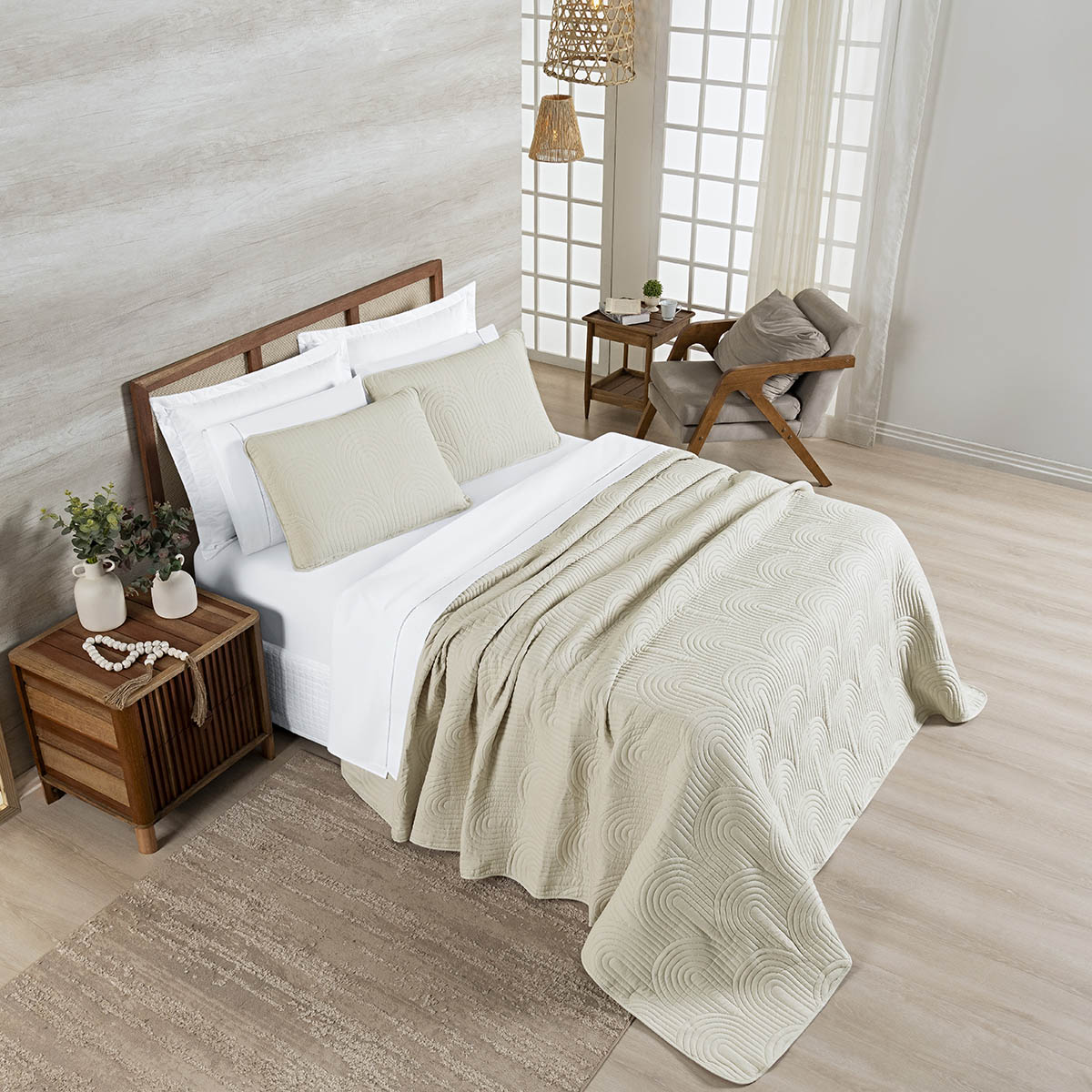 Kit Cobre Leito Colcha Arcos Queen Dupla Face Matelado 200 Fios 3 Peças Baunilha Palha