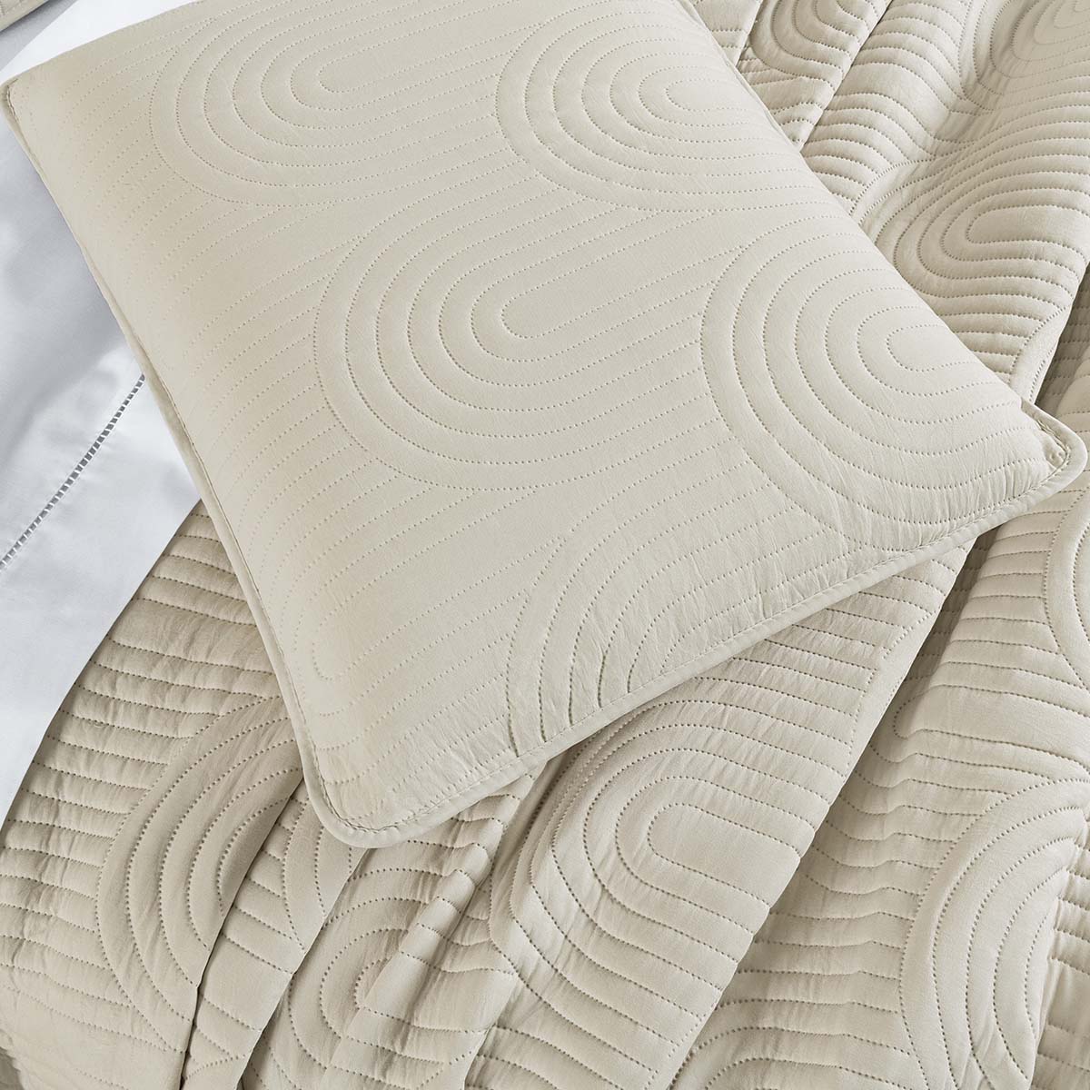 Kit Cobre Leito Colcha Arcos King Dupla Face Matelado 200 Fios 3 Peças Baunilha Palha