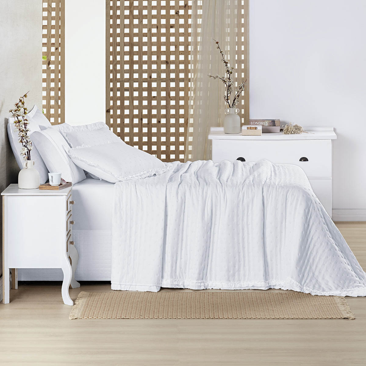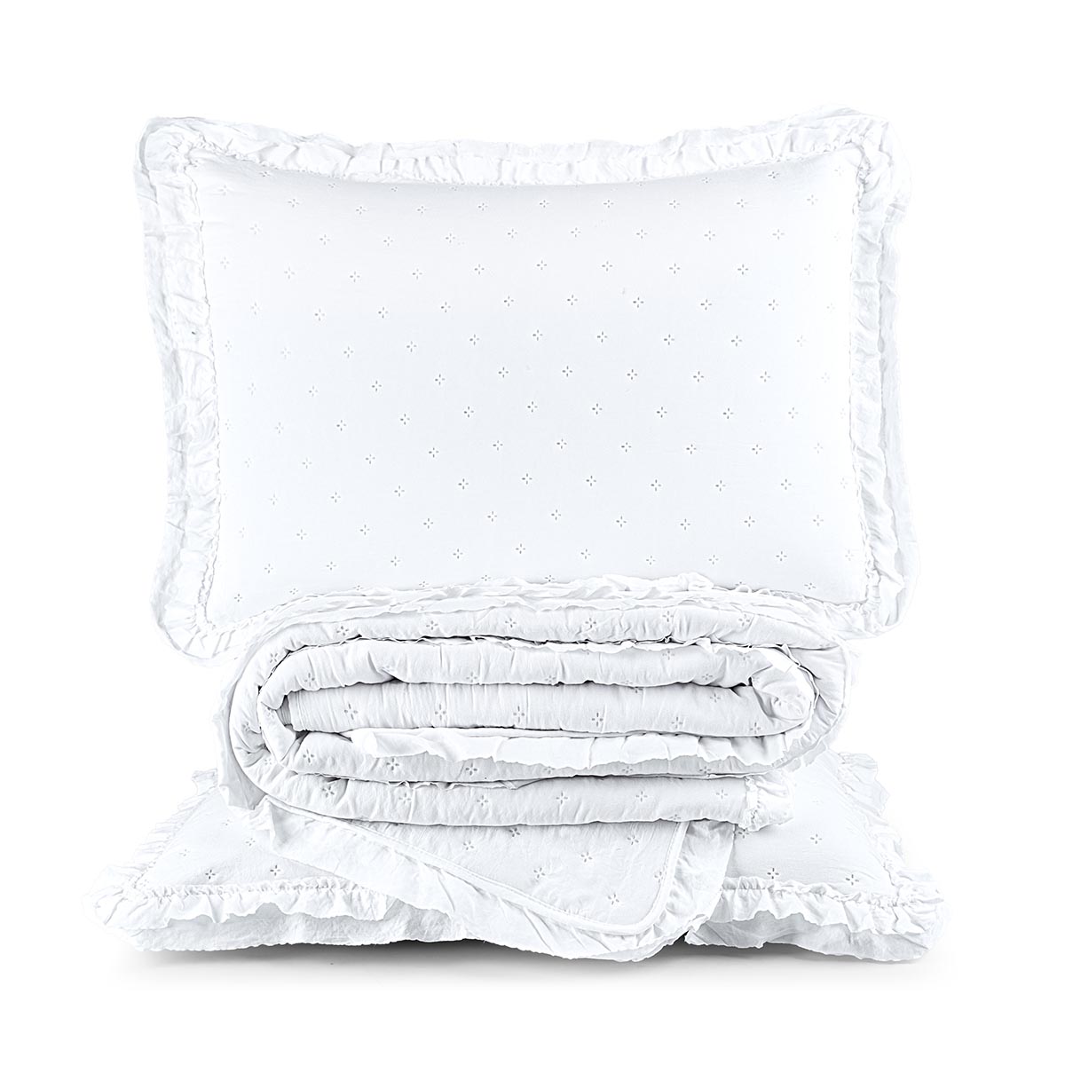 Kit Cobre Leito Colcha Vitta King Matelado c/ Babadinhos 200 Fios 3 Peças Branco