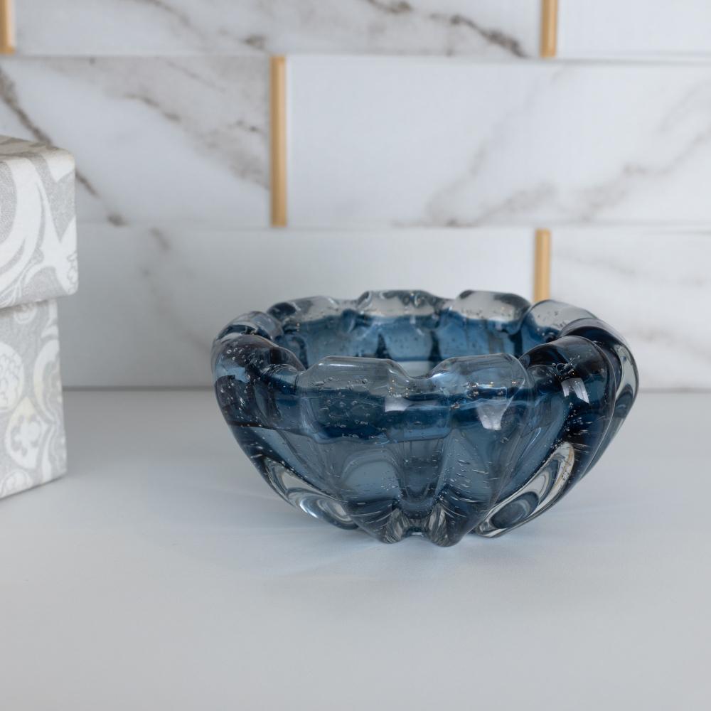 Centro de Mesa Lyor Italy de Vidro Azul 12,5cm x 6,5cm