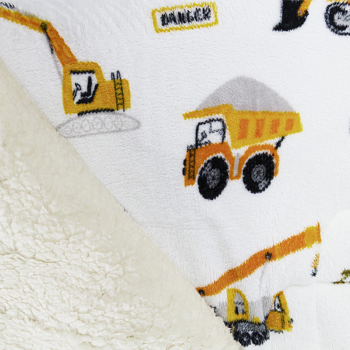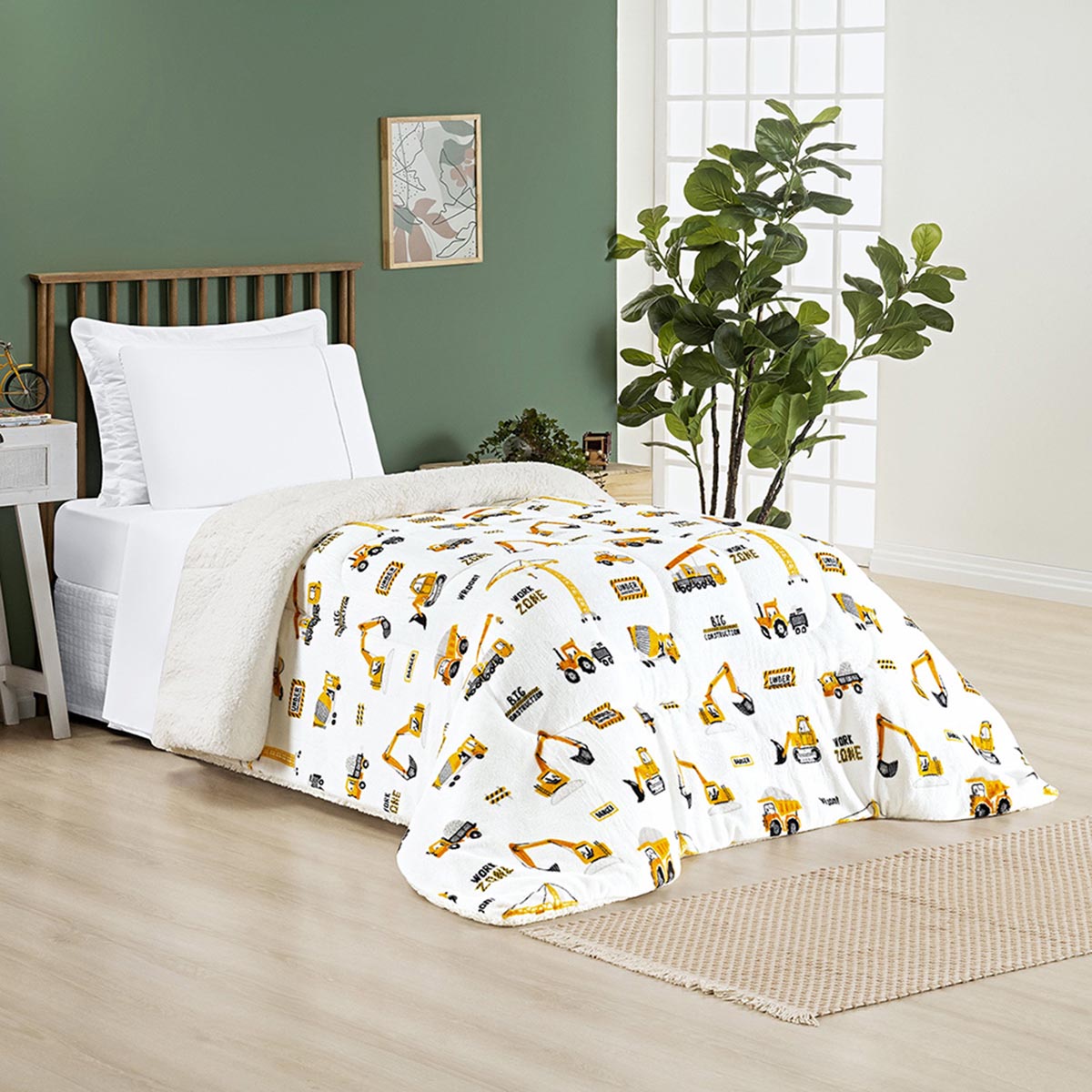 Coberdrom Cobertor Lutti Solteiro Quarto Cama Infantiil Sherpa Manta Toque Lã de Carneiro Trator Caminhão Branco