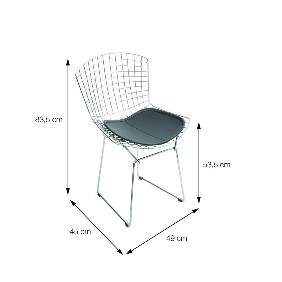 DESCRIÇÃO TÉCNICAMaterial: Aço CromadoAssento: Couro EcológicoDimensões (LxPxA): 53 x 46.5 x 76cmAltura do Assento: 45 cmPeso: 4.3 KgPeso Máximo Suportado: 120 Kg INFORMAÇÕES DO PRODUTOA Cadeira Bertoia surgiu quando Harry Bertoia, seu criador, olhou uma cesta de secar pratos e resolveu projetar uma cadeira a partir dali.Com apenas aço curvado e uma máquina de solda, Harry conseguiu criar uma das cadeiras mais famosas do mundo e sem dúvidas a “queridinha” dos Arquitetos e Design de Interiores.A Cadeira Bertoia se adapta incrivelmente a todos os ambientes.