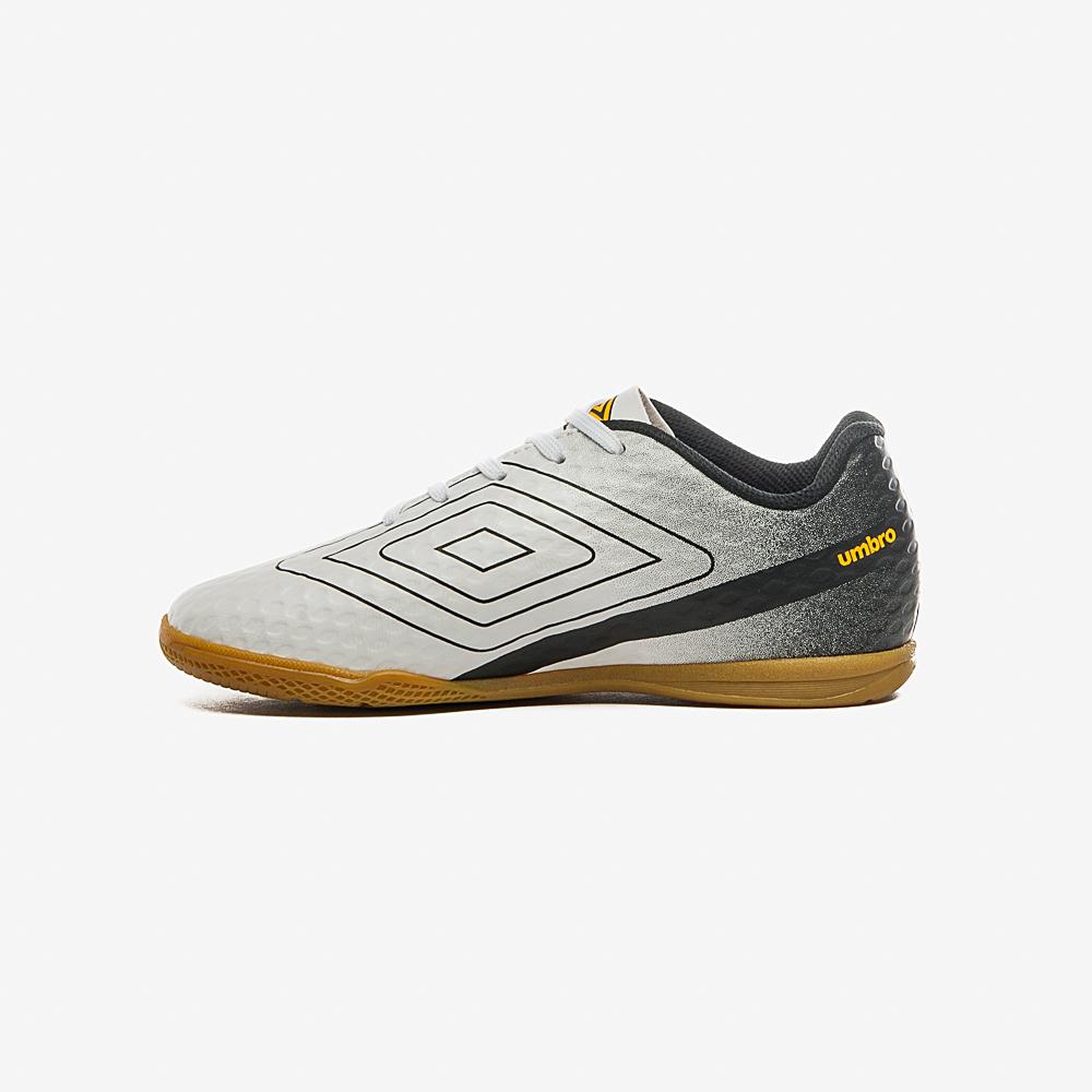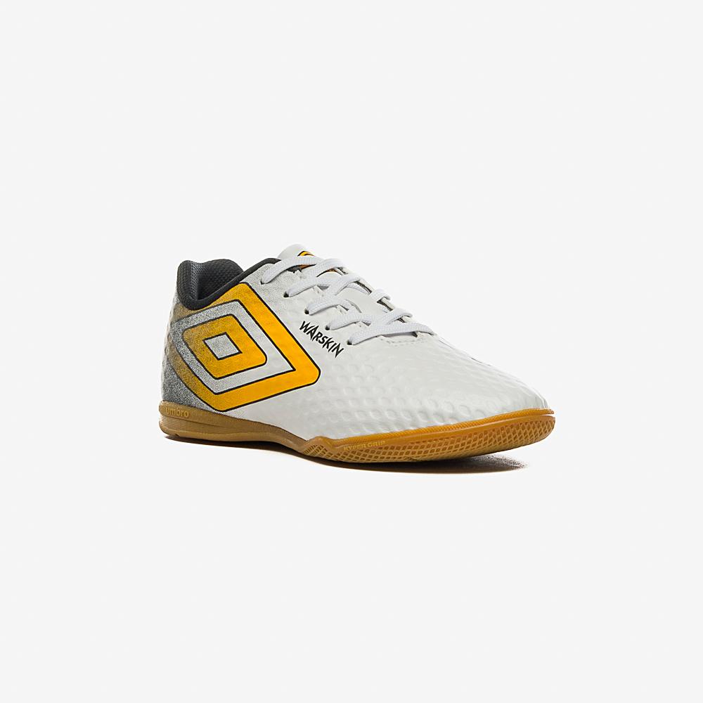 A Chuteira Futsal Umbro Warskin Jr é ideal para os jogadores mirins que procuram domínio e controle dentro das quadras. Inovador e funcional, o cabedal traz grafismo em degradê e textura integral que utiliza um novo tipo de cilindro para proporcionar um melhor grip no momento do chute.Cabedal assimétrico construído em material laminado com frequência em rolo aplicada em todo a sua extensão, que oferece um grip superior quando ocorre o contato com a bola. Possui serigrafia em duas cores com efeito degradê, assinatura Warskin aplicada próximo ao atacador, Diamante Umbro em destaque na lateral e palmilha macia em EVA com tecido de poliéster forrado. O solado de futebol indoor é composto por borracha para maior tração e durabilidade.