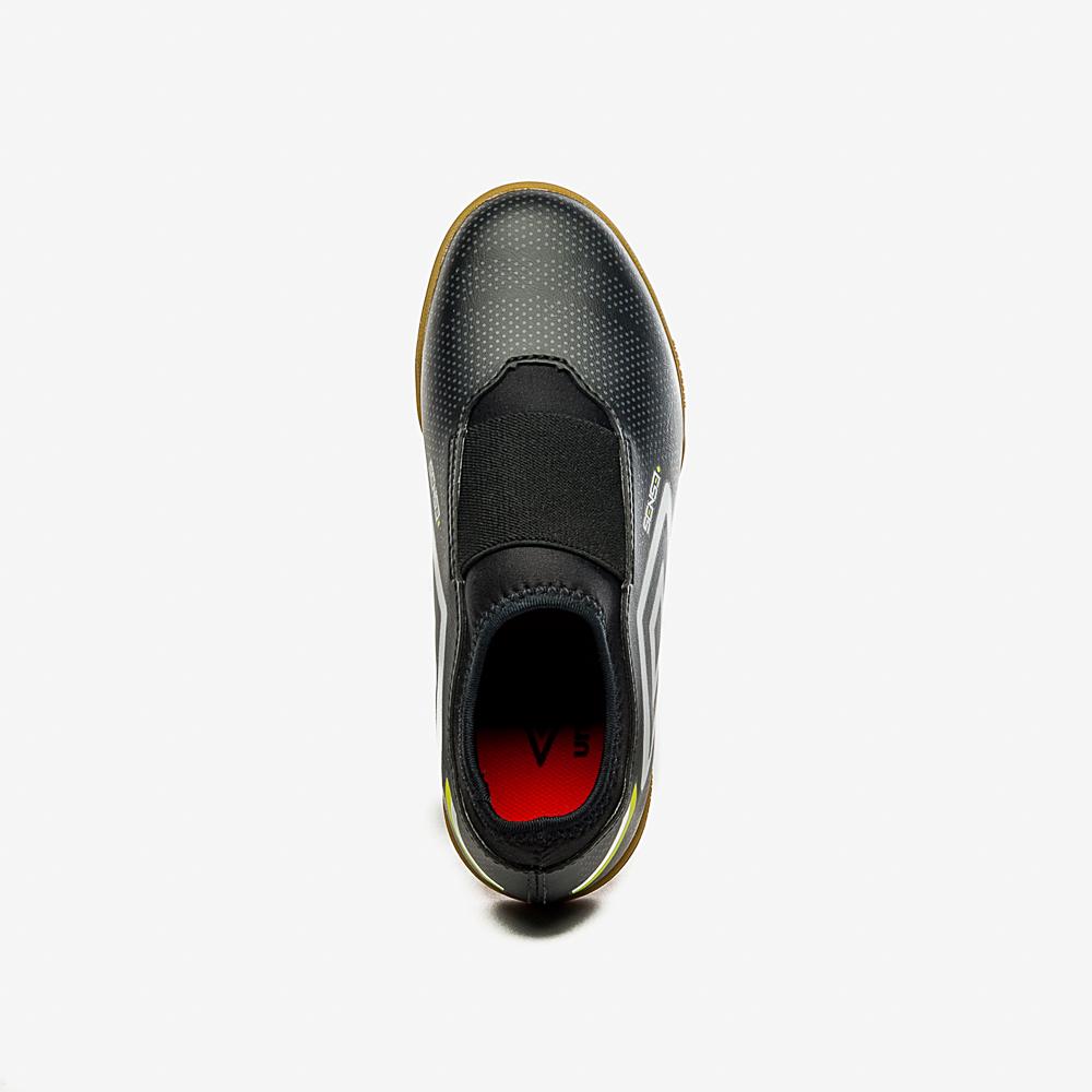 Desenvolvida exclusivamente para os mini craques, a Chuteira Futsal Umbro Sense Kids segue o modelo slip on, que dispensa a necessidade de atacador e oferece praticidade no calce. Seu design versátil e despojado com cores vivas traz faixa tensora na região do mediopé para um ajuste confortável.A base do cabedal é construída em tecido com elastano e a parte externa em material sintético laminado de fácil limpeza e manutenção. Possui sistema de ajuste em faixa de elástico na região do mediopé, grafismo personalizado em serigrafia simulando textura, Diamante Umbro em destaque na lateral, assinatura Sense aplicada na parte frontal externa e palmilha macia em EVA com poliéster forrado. O solado de futebol indoor é construído todo em borracha monocolor, que oferece função antiderrapante e durabilidade.