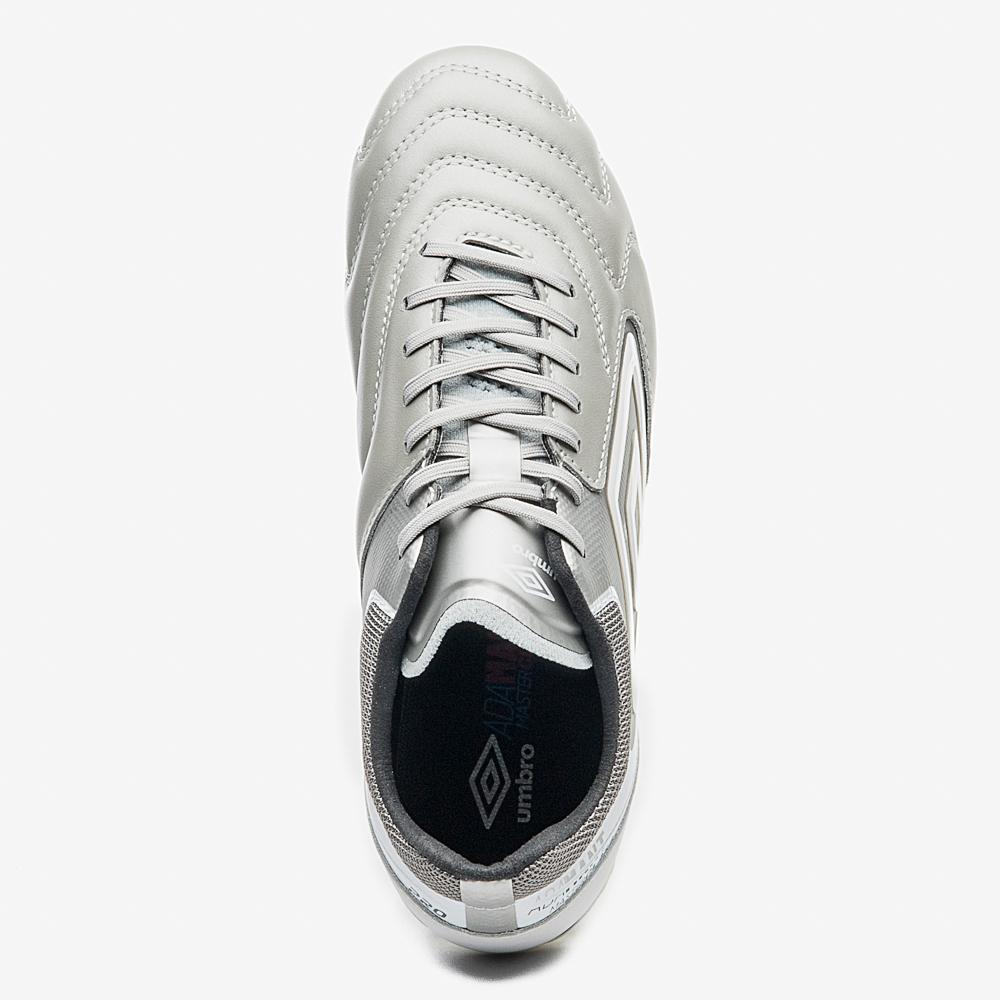 Chuteira Campo Umbro Adamant Master Class ProA Chuteira Adamant Master Class Pro da Umbro é o calçado ideal para atletas de alto rendimento que buscam excelência em performance. Com um design clássico aliado a inovações tecnológicas, esta chuteira foi desenvolvida para elevar o seu jogo a um novo nível.Atributos do Produto: Marca: Umbro Modelo: U03FB00226 Cor: Prata, Branco, GrafiteCaracterísticas Exclusivas:O cabedal da Chuteira Adamant Master Class Pro apresenta um knit estruturado ultraleve na lingueta, proporcionando conforto e suporte durante toda a partida. O forro em microfibra garante uma sensação agradável ao toque, enquanto as costuras de reforço e as linhas de flexão em pontos estratégicos oferecem maior durabilidade e mobilidade.O fechamento inovador combina uma meia de knit compressiva com cadarço para um ajuste seguro e personalizado, garantindo estabilidade em cada movimento. O solado FG conta com 11 travas mistas em Pebax, proporcionando tração e aderência em diferentes tipos de terreno. Além disso, a palmilha de montagem injetada em Pebax oferece um retorno de energia excepcional, permitindo que você dê o seu melhor em campo.Leveza, Conforto e Desempenho:A Chuteira Adamant Master Class Pro da Umbro combina estilo, tecnologia e funcionalidade para proporcionar uma experiência de jogo única. Seja em treinos intensos ou competições acirradas, este calçado foi projetado para acompanhar o seu ritmo e potencializar a sua performance. Não deixe nada para trás e conquiste a vitória com a confiança de quem está calçando a melhor chuteira do mercado.Adquira agora a sua Chuteira Campo Umbro Adamant Master Class Pro e esteja pronto para superar todos os desafios que o jogo possa trazer!