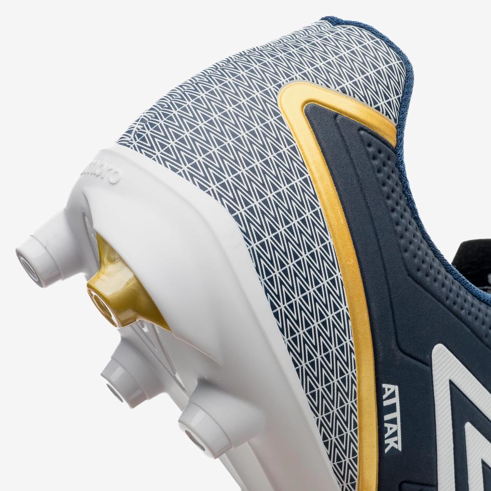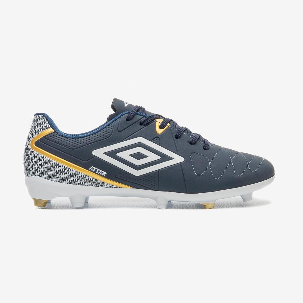 Chuteira Campo Umbro Attak Eternal: Desempenho e Estilo em Cada JogoDescubra a Chuteira de Campo Attak Eternal da Umbro, um modelo que combina tecnologia, conforto e design moderno para elevar seu desempenho em campo. Ideal para jogadores que buscam qualidade e estilo, essa chuteira é a escolha perfeita para quem deseja se destacar durante as partidas.Características do ProdutoA Chuteira Campo Umbro Attak Eternal é projetada para proporcionar a melhor performance em campo. Veja abaixo suas principais características: Marca: Umbro Modelo: U01FB071 Cor: Marinho, Branco, Dourado Cabedal: Material laminado com aplique de alta frequência e detalhe no Diamante Umbro, garantindo durabilidade e estilo. Costura programada: Proporciona resistência e conforto ao calce, ideal para longas partidas. Solado FG: Equipado com 10 travas + 2 centrais em TPU, oferece excelente tração e estabilidade em campo, permitindo movimentos ágeis e seguros.Benefícios da Chuteira Attak EternalCom um design que não passa despercebido, a Chuteira Campo Umbro Attak Eternal é perfeita para jogadores que buscam não apenas desempenho, mas também um visual marcante. O cabedal em material laminado não só confere um toque sofisticado, mas também facilita a limpeza e manutenção da chuteira. As travas do solado garantem uma aderência superior, permitindo que você jogue com confiança em diferentes tipos de gramado.Por que Escolher a Chuteira Umbro Attak Eternal?Se você procura uma chuteira que una qualidade, conforto e estilo, a Chuteira Campo Umbro Attak Eternal é a escolha ideal. Com um design pensado para maximizar seu desempenho, cada detalhe foi cuidadosamente elaborado para atender às necessidades dos jogadores mais exigentes. Prepare-se para dominar o campo com a Umbro!Garanta a Sua!Não perca a oportunidade de elevar seu jogo com a Chuteira Campo Umbro Attak Eternal. Adquira já a sua e sinta a diferença em cada partida! Aproveite e faça parte do time dos vencedores!