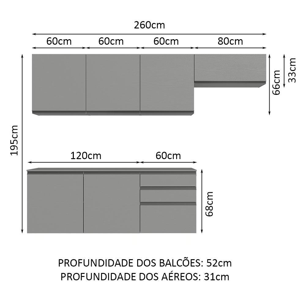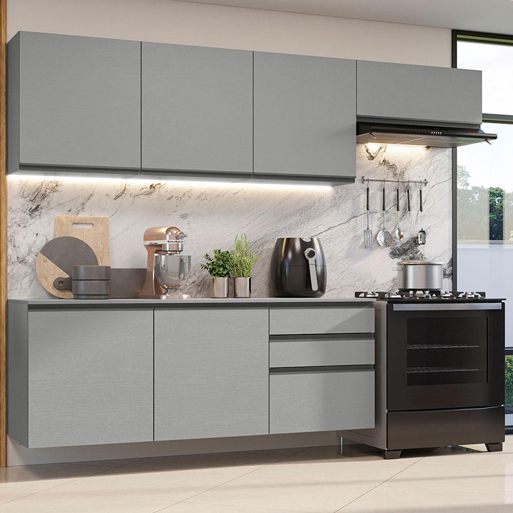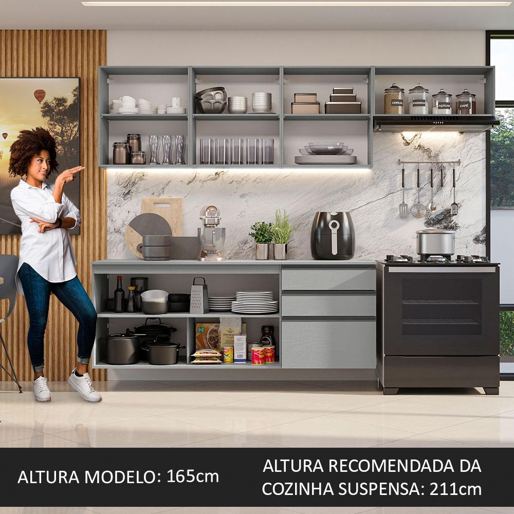 Armário de Cozinha Completa Suspenso 260cm Cinza Nice Madesa 13